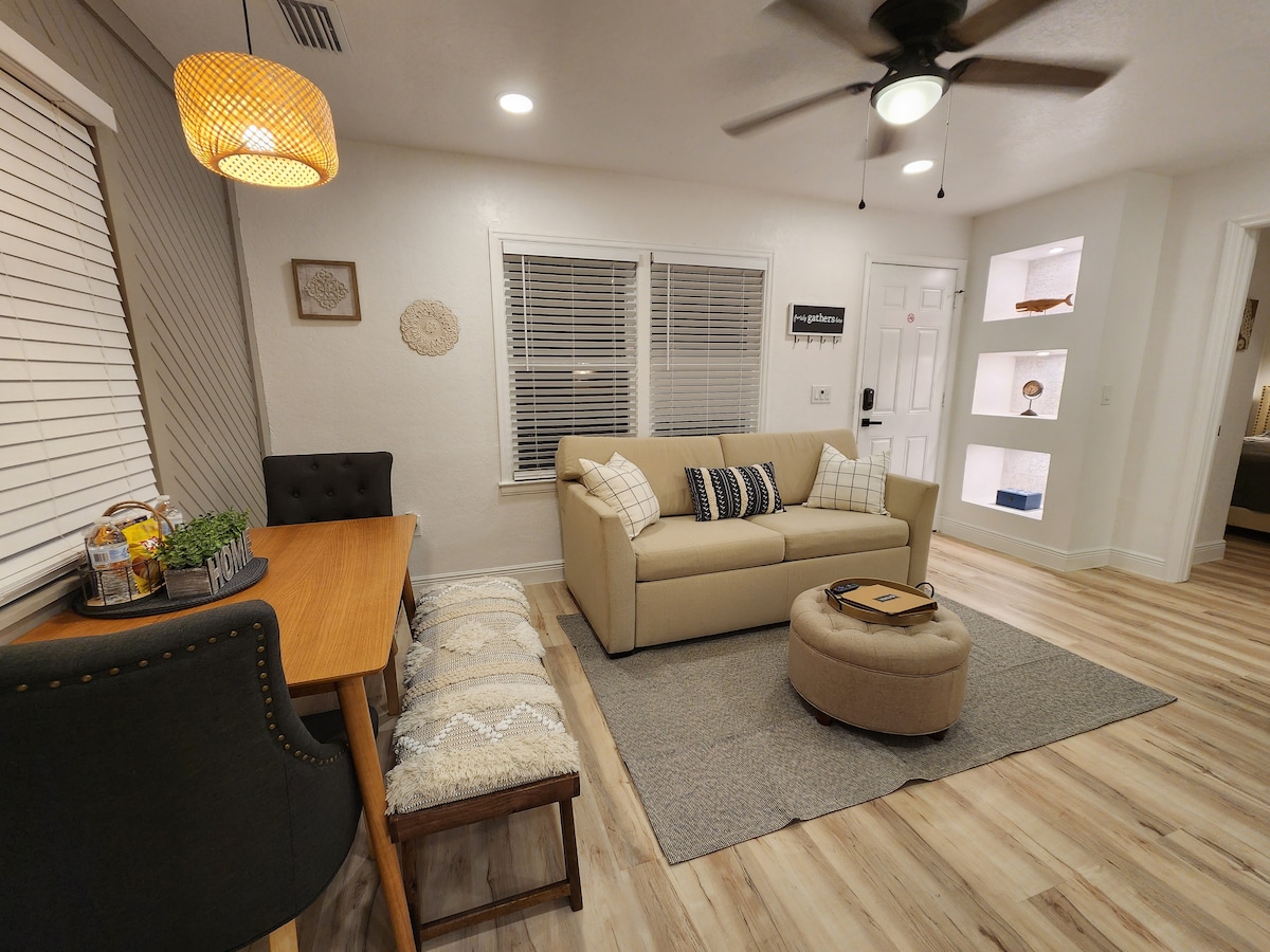 Helyezd magad kényelembe az újonnan épült citromstúdióban, amely egy modern, de otthonos, központi elhelyezkedésű stúdió Tampa belvárosa mellett. A North Hyde Park mindössze néhány percre található a repülőtértől, és könnyen megközelíthető az autópálya. A stúdióban számos sétálható étterem és park található. Élvezd a Tampai Egyetem, a sörfőzdéket, a Sparkmans Warfot, a River Walkot, az Armature Works-t, a vásárlást a Hyde Park Village-ben és számos helyi látnivalót... Parkolási lehetőség/Önálló bejutás, gyere és menj kedved szerint.