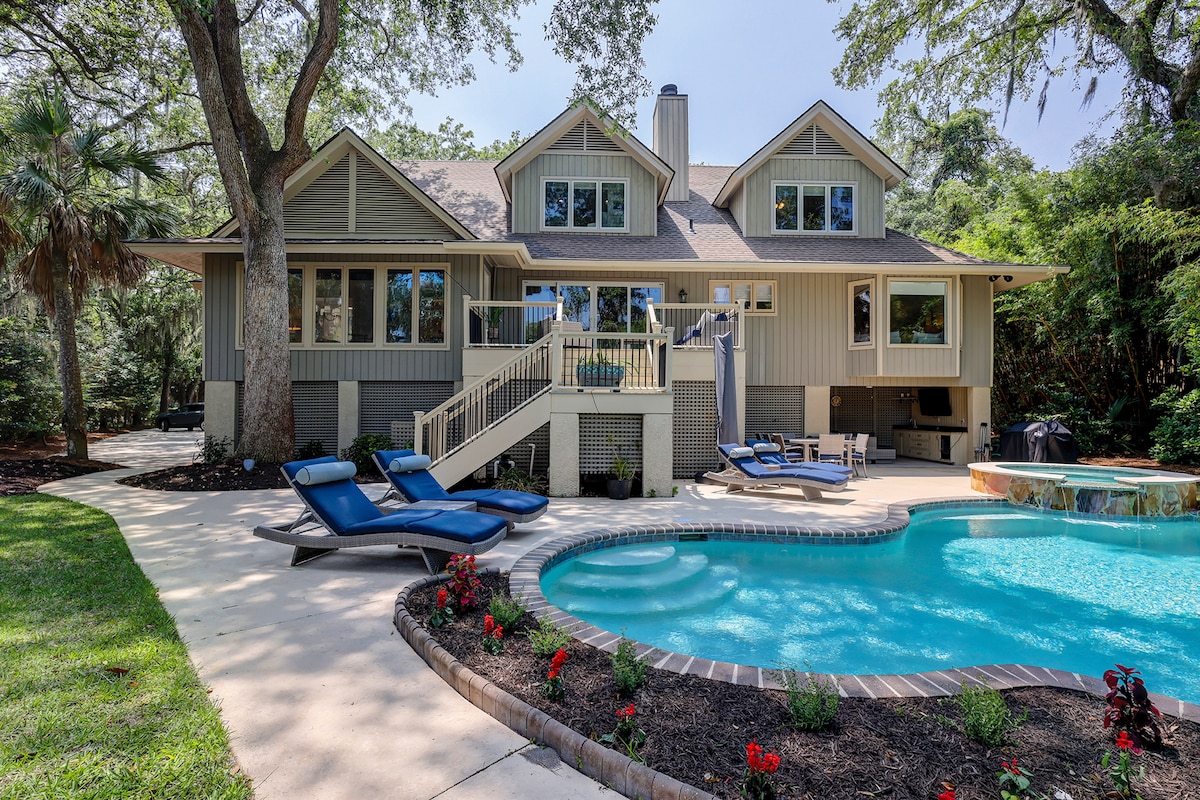 One of the Best-Located Homes on Hilton Head Island! Enjoy a true island getaway at this beautifully appointed third-row ocean home in Palmetto Dunes. 2-minute walk to the beach. Relax in your private heated pool and spa or walk to Palmetto Dunes world class amenities from this unbeatable location. Enjoy new seamless flooring and renovated Caribbean blue pebble plaster pool and spa. Thanksgiving and Christmas available. Reserve for Fall getaway while dates are still open.