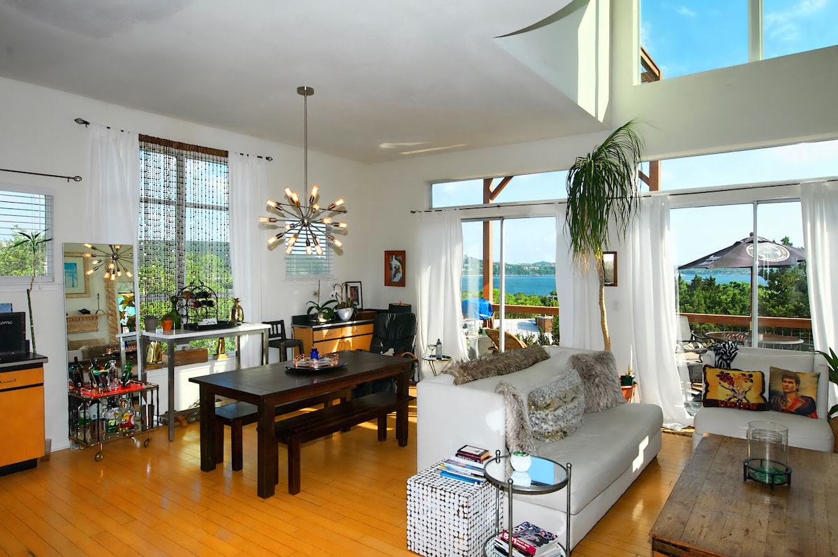 Üdv az 1970-es évekbeli álomházban, az ATX-ben! Az HBO Lakeside Retreats című műsorának hetedik epizódjában látható kézműves tóparti szálláshelyet a nyugodt kilátás, az inspiráló dizájn és a természettel való időtlen kapcsolat miatt választottuk ki. Austin belvárosától mindössze harminc percre, a Hippie Hollow-tól és a Travis-tótól pedig rövid sétára található ez a hely, ahol lelassíthatunk, kifújhatjuk a gőzt, és emlékezhetünk arra, hogy mi a legfontosabb…