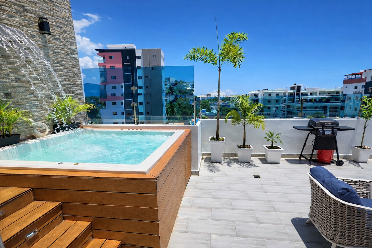 Gyere, és élvezd a gyönyörű és fényes tetőtéri tetőtéri teraszos tetőtéri tetőtéri tetőtéri tetőtéri tetőtéri tetőtéri épületet Encuentro egyik legújabb épületében. Cabarete és Sosua között, egy csendes lakóövezetben található a loft tökéletes hely a kikapcsolódásra. Az épület közös használatú tereiben a függőágyban fekhet, használhatja az uszodát és a kertet, vagy élvezheti a tetőtéri jacuzzit és grillezési lehetőséget. A tetőtér 5 perc sétára található az Encuentro strandtól, amely világszerte ismert a lenyűgöző szörfözésről és a kiteboardozásról.