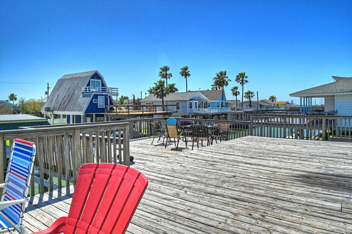 Hangulatos 3 hálószoba, 2 fürdőszobás otthon, maximális kihasználtság 7 fő. Az otthont nemrég újították fel, és mindennel rendelkezik, amire szükséged lehet a tökéletes családi nyaraláshoz! Töltsd a napot a látnivalók közelében, horgássz az elülső udvarról, vagy egyszerűen csak élvezd a gyönyörű kilátást a saját emeleti és földszinti teraszodról. A House 13 percre található a galvestoni Strandtől, 24 percre a Texas City Dike-tól és 30 percre Kemah városától. Az otthon csak lépcsőn közelíthető meg, háziállat nem megengedett.