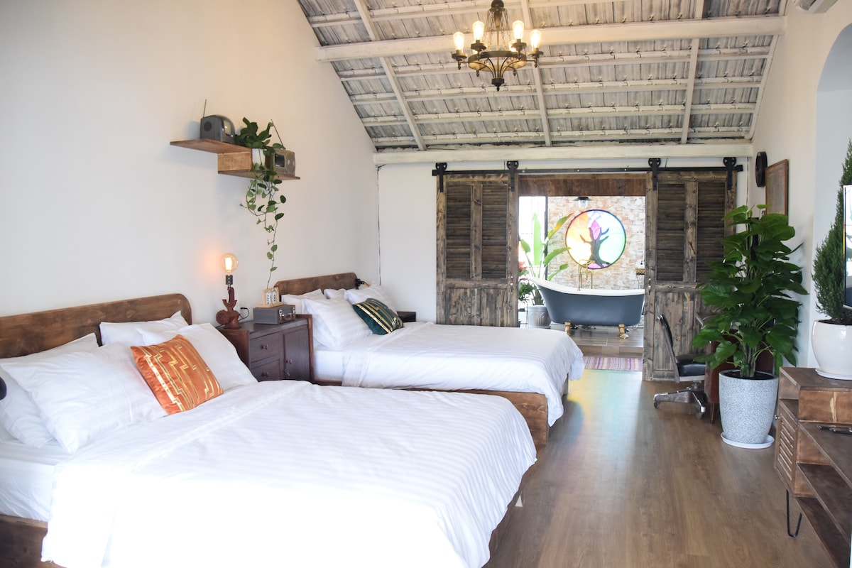 This loft is in the building that built up from the colonial period (on the 3rd floor same as S.1 & S.2) . Its design is inspired by the old Vietnamese features with rusticity that brings comfortable and cozy feelings. This studio has a great view from balcony so that you can have chillin time at night. Besides, this place is very close to all the insanity of backpacker area ( Pham Ngu Lao -Bui Vien street), but far enough away that you don't stay up all night from the noise