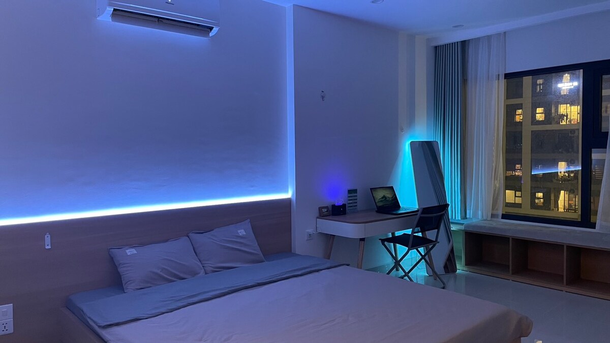 🌿 Nghỉ Dưỡng Cao Cấp – Riêng Tư & An Nhiên 🌿 Một không gian tinh tế như hơi thở thiên nhiên cùng với tiện ích chuẩn căn hộ hàng hiệu, riêng tư và yên tĩnh, an toàn phòng cháy chữa cháy cho các cặp đôi muốn tìm lại sự lặng yên, hoặc các chuyên gia lưu trú dài ngày tại Việt Nam. 🌅 Ban công thoáng rộng 🛁 Sản phẩm tắm hữu cơ giúp từng phút giây nghỉ ngơi trở nên thuần khiết và trọn vẹn. ✈️ Dễ dàng đặt Grab tới trung tâm (30 đến 45 phút). Đây là một nơi an toàn và an bình.