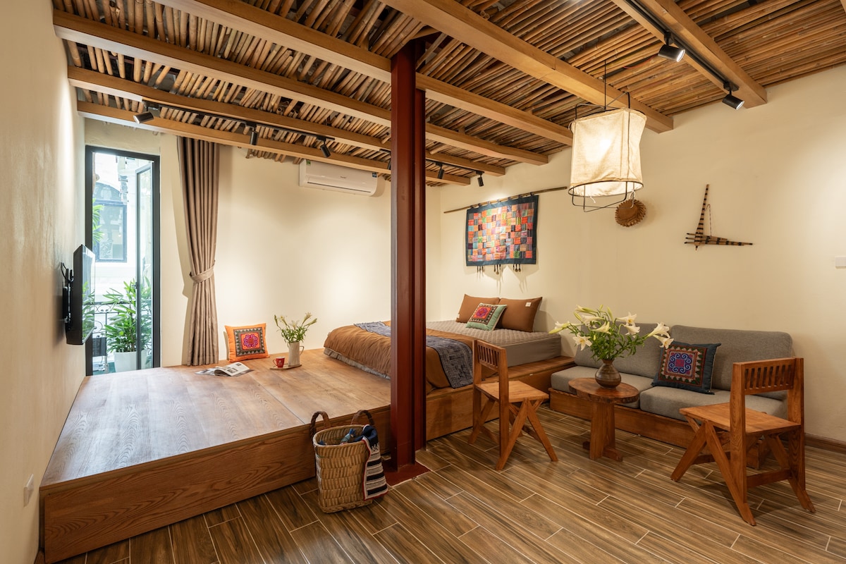 An beautiful Apartment with top-floor surrounded by trees can “FEEL LIKE YOU ARE IN A TREEHOUSE” Nestled in the heart of the city, our unique Apt is located in a French collective quarter which brings you an old Hanoi trace and a nostalgic atmosphere. Immerse yourself a blend of timeless here and enjoying the comfort and convenience of modern living in the Apartment. This two-floor apartment is the perfect getaway for families, friends, or business travellers looking for an unforgettable stay..