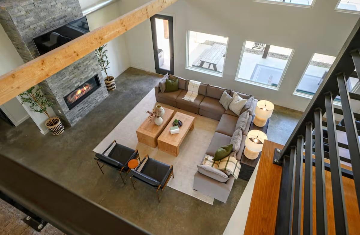 Unwind in your own mountain retreat. This spacious 5BR cabin features a private pool & hot tub, fire-pit, indoor fireplace, and full chef’s kitchen. Sleep set-up Bedroom 1: King & ensuite Bedroom 2: King & ensuite Bedroom 3: Queen Bedroom 4: 2 Twins Loft: Queen sofa-bed & workspace Enjoy HDTV, board games, high-speed Wi-Fi, and a BBQ deck with panoramic views. Trails, wineries, and family attractions are a 15-minute drive. Super-fast host replies, smart-lock entry, safety alarms for worry-free s