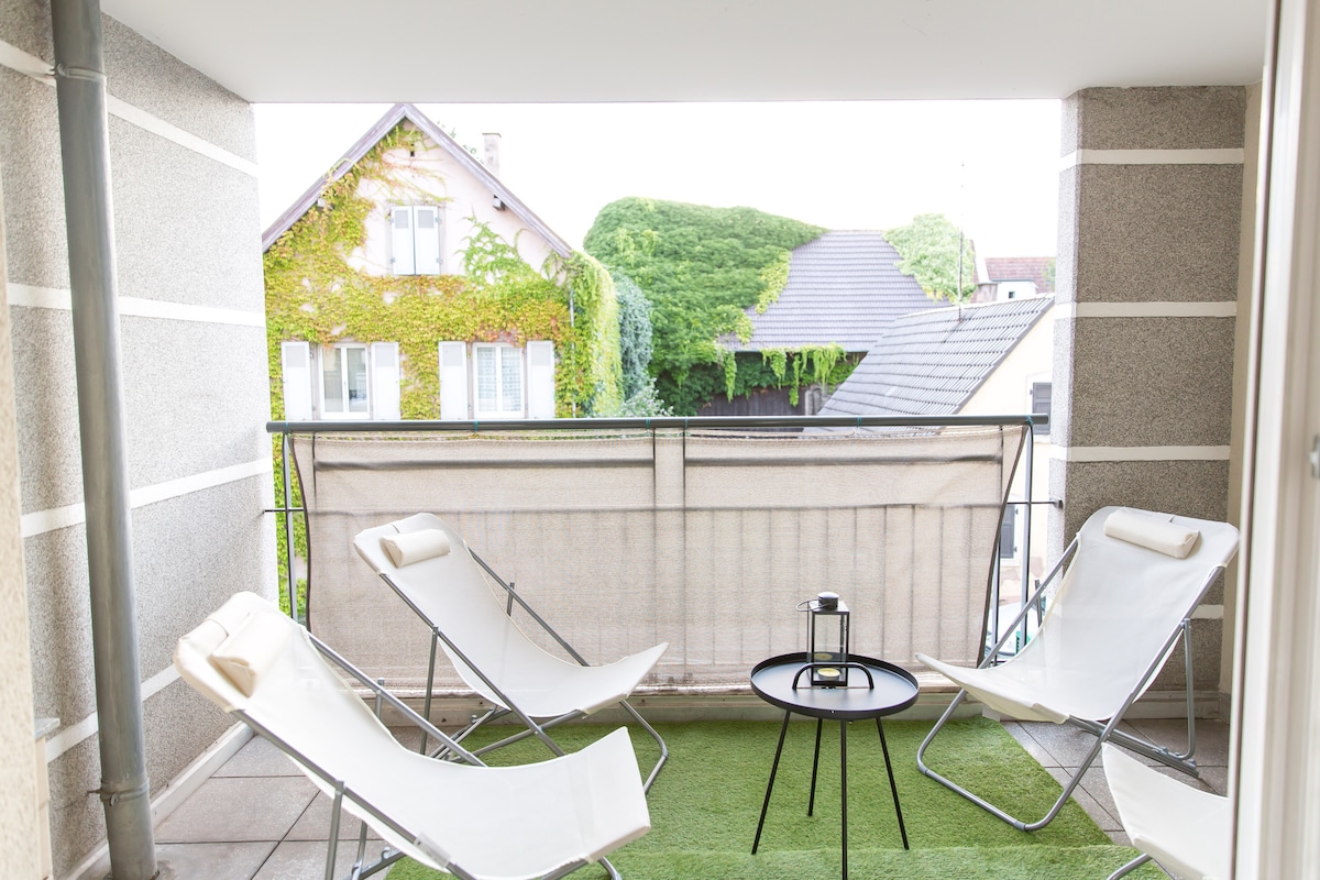 Gyönyörű 2 hálószoba a „Vieux Schiltigheim”-ben. Strasbourg városközpontját villamossal 11 perc alatt, a Wacken üzleti negyedet (kevesebb mint 10 perc sétára), az Európai Üzleti Területet pedig autóval 10 perc alatt érheti el. Ingyenes privát parkoló/4k 140 cm-es TV - Netflix és Amazon Prime előfizetéssel A ház alapvető kellékeit biztosítjuk: felszerelt konyha (indukciós tűzhely, edények, sütő, kenyérpirító, vízforraló), ágynemű, piperecikkek stb.
