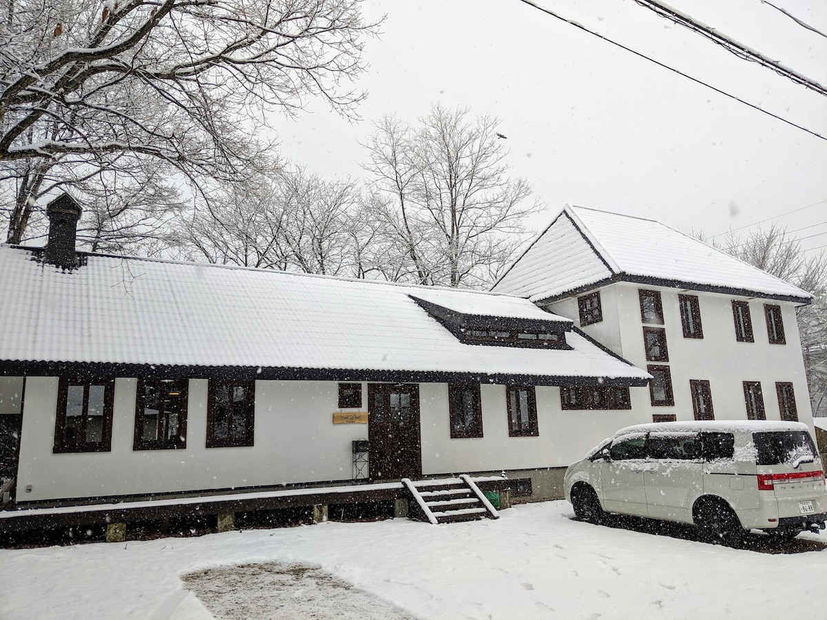 Újonnan felújított! Üdvözlünk az Ember Lodge-ban! A családbarát Goryu lejtőitől és fejlett terepétől 100 méterre található szálláshelyünk meleg szobákat és hívogató légkört kínál. Padlófűtés, száraz szoba és nagy sebességű Wi-Fi. Tökéletes családok és csoportok számára. Könnyen megközelíthető a völgy összes hegye a közeli 100 méteres transzferjáraton keresztül. 6 kényelmes egyszemélyes ágy 3 egymással összekötött szobában, saját fürdőszobával. 12/1 - 3/31 reggelivel. [7+ csoportos foglalás / teljes páholybérlés lehetséges]