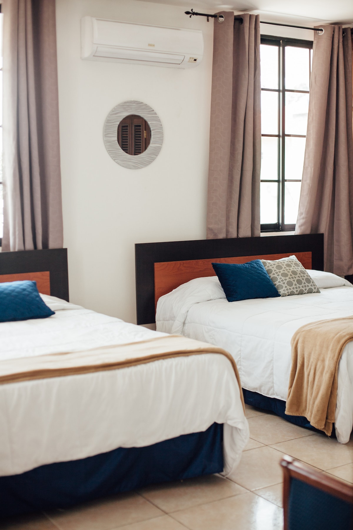 A szobánk privát, és két queen méretű ággyal, széles és privát fürdőszobával, meleg vízzel, 32hüvelykes LED-tévével, kábellel, gardróbbal, Wi-Fi-vel és légkondicionálóval rendelkezik. Többek között a City Mall, a Zona Viva, a Grand Central Bus Station, a Copantl Hotel & Convention Center, a kórházak, a bankok és a belváros közelében találhatóunk. Van egy energiaüzemünk is.