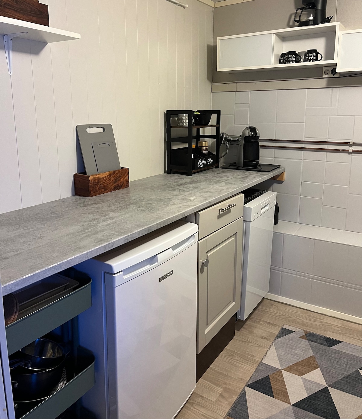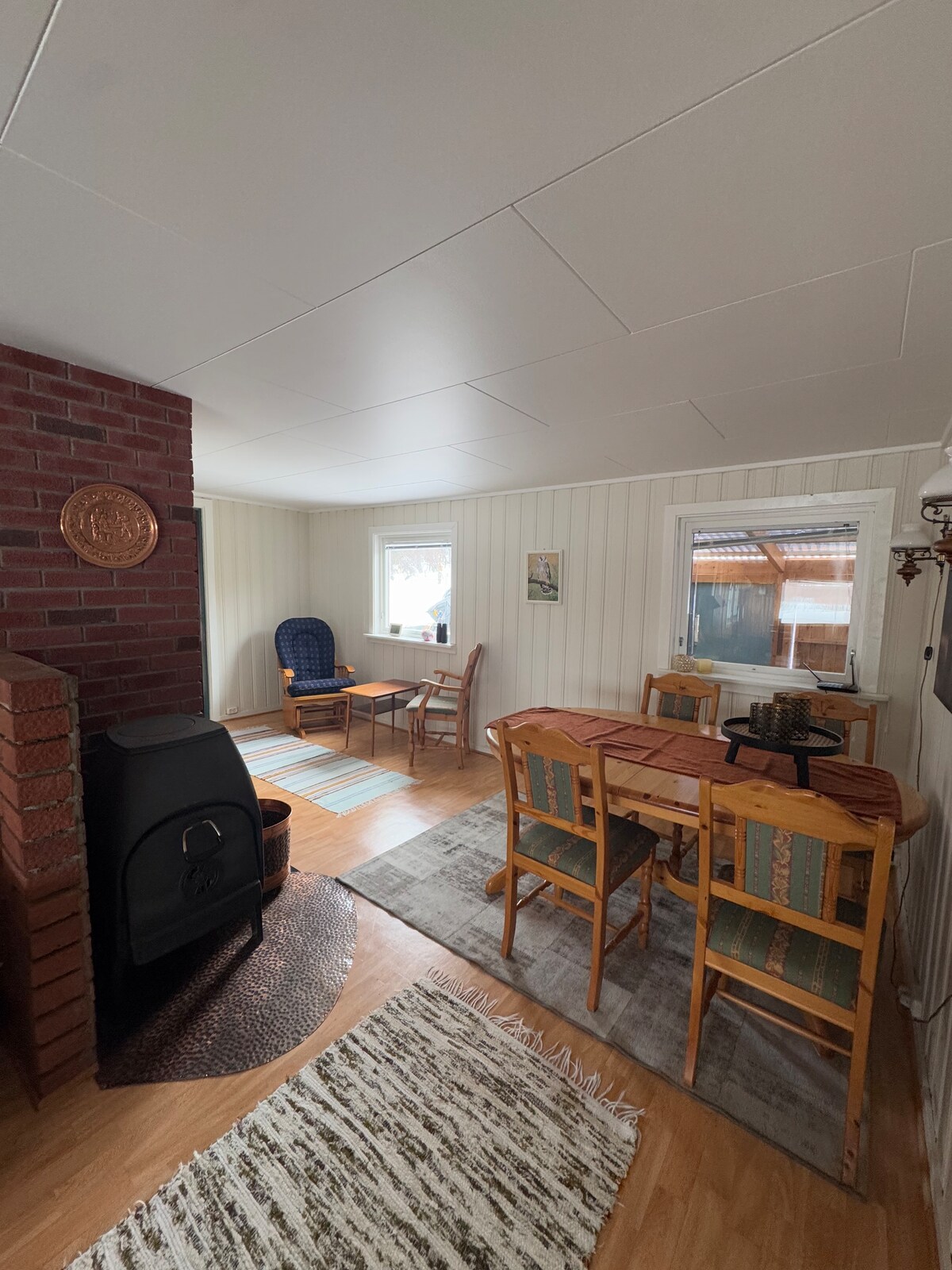 Üdvözöljük a víztó melletti csendes környéken található víkendházunkban. A víkendház a tóra néz, és a nappali ablakából az északi fényeket és az éjféli napot is láthatod. A környéken egész évben változatos lehetőségek vannak túrázásra, szabadtéri tevékenységekre és élményekre. Nyugodtan kérj tőlünk tippeket :) FIGYELEM! Az emeletes ágy részben nyitott, és nem alkalmas kisgyermekek számára. A kisgyermekek használhatják a hálószobát, a kanapéágyat a nappaliban vagy egy eltávolítható padlómatracot. A víztartály 120 literes, 3-4 fő számára biztosít meleg vizet.