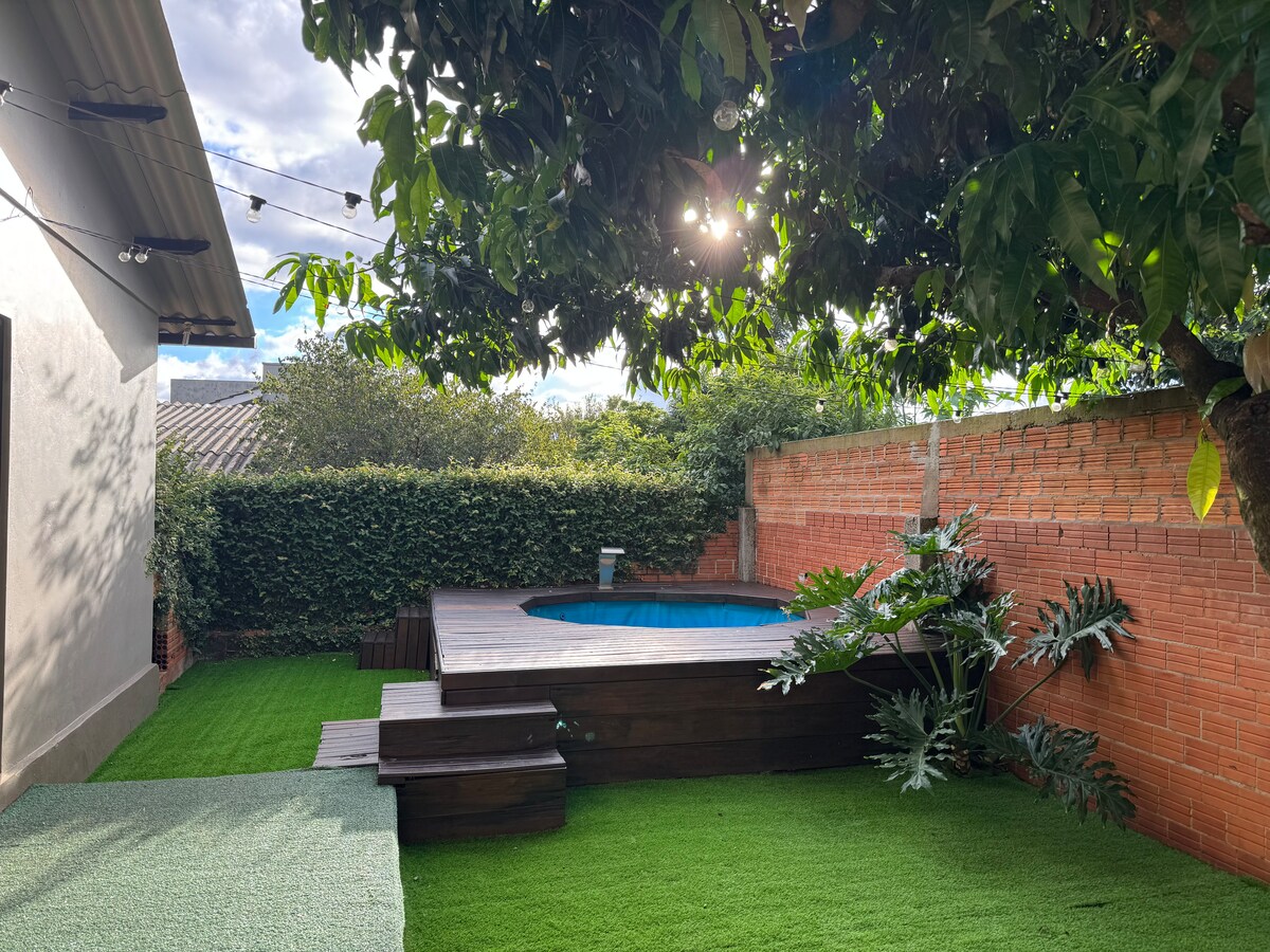 Megérkezett az álom kiruccanásod! Teljes ház két hálószobával, fürdőszobával, nappalival, víztisztítóval felszerelt konyhával, garázzsal és egy csodálatos terasszal. Élvezd a légkondicionálás kényelmét, és lazíts a TV-vel vagy a grillezővel a forgó grillezőnkön. Csendes környezetben, közel Santo Cristo városához, tökéletes hely arra, hogy felejthetetlen emlékeket teremts. Gyere, és élj át különleges pillanatokat. OBS: van vízszűrő, és az artézi kútvizet az önkormányzat kezeli (klórozás)