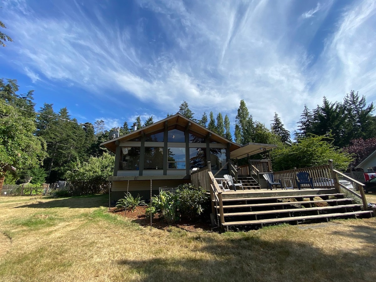 Egy csendes környéken, egy szép, privát, légkondicionált, boltíves mennyezetű víkendház, amelynek üvegfalán keresztül a Baynes Sound és a Vancouver-sziget hegyei láthatók. Önálló, saját bejárattal. Queen méretű ágy loftlakásban, egyszemélyes ágy a földszinten. Privát fürdőszoba zuhanyzóval. Privát hozzáférés a strandhoz. Komp közelében, egy rövid sétára a helyi falutól. Vedd figyelembe, hogy ez az ingatlan nem megfelelő mozgáskorlátozottak vagy kisgyermekek számára. NEM SZÁMÍTUNK FEL TAKARÍTÁSI DÍJAT.