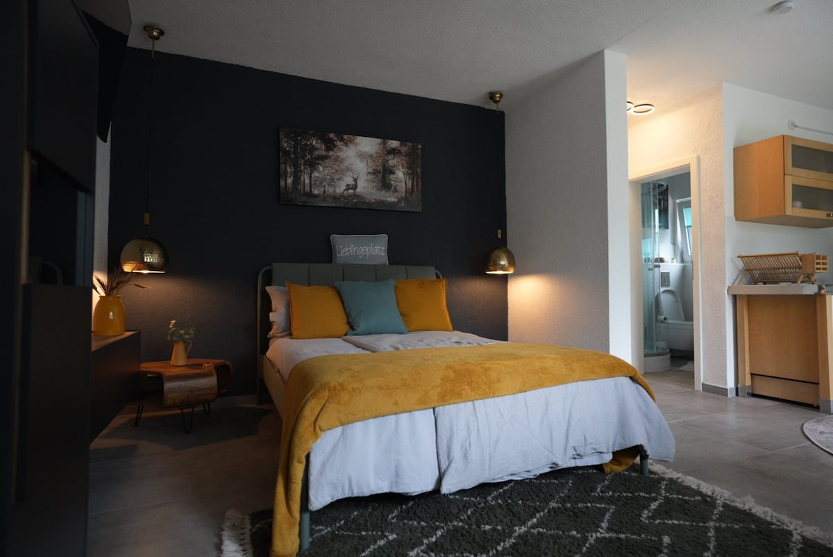 Üdvözöllek a MENTÁBAN és ebben a fényűző lakásban, amely mindent kínál egy nagyszerű rövid vagy hosszú távú tartózkodáshoz Dortmundban: → Ingyenes parkolás saját parkolóhelyen → Teljesen felszerelt konyha mindennel, amire szükséged van → Intelligens TV és munkaterület Wi-Fi-vel → kényelmes franciaágy → TASSIMO KÁVÉ → Kiváló kapcsolat, közvetlenül a metró mellett
