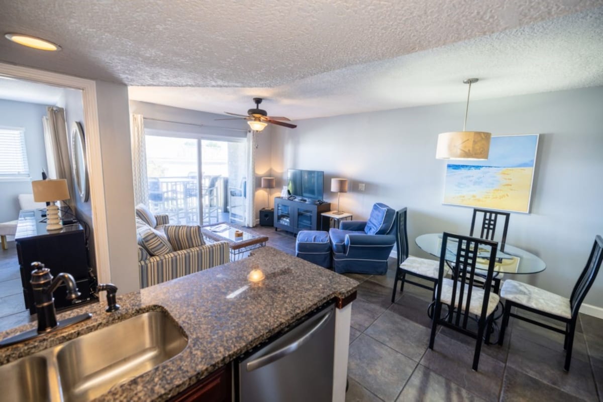 Oceanfront - 2 bed, 1.5 bath, living/dining room, kitchen, one patio and one balcony MW, DW, 3 Satellite TVs, WiFi. ONSITE POOL. NO PETS, NO SMOKING. ONE (1) SET OF BED LINENS AND TOWELS PROVIDED. BEDS: 1 King, 1 Queen Accommodates 4.