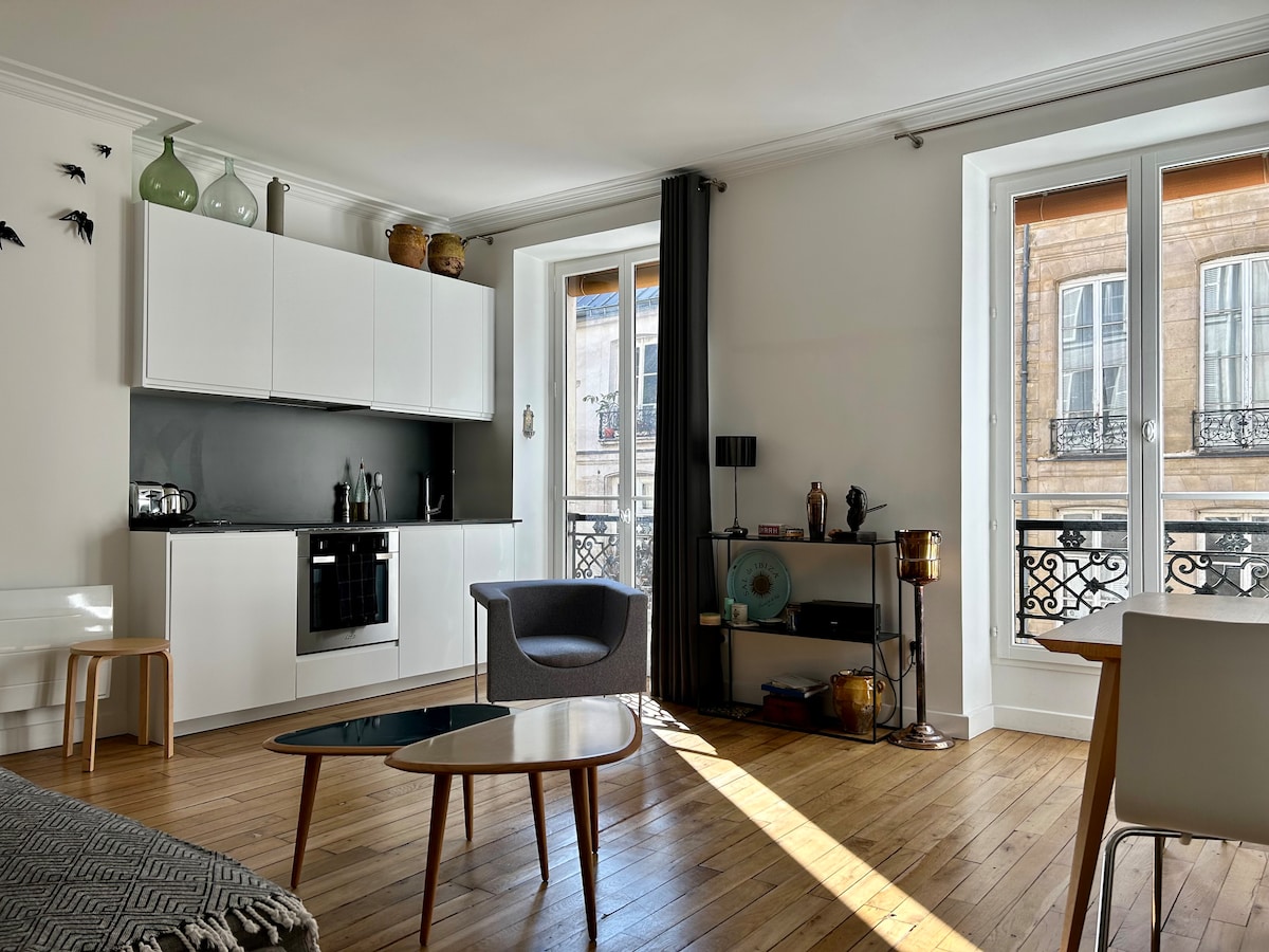 ✨ Ikonikus ♥️ Erkély, kilátás, és Párizs a lábad előtt. Ezt a meghitt párizsi búvóhelyet teljesen felújítottam és szeretettel rendeztem be – tervezőként szenvedélyem az időtlen elegancia. A Place Vendôme közelében, magas emeleten, lifttel megközelíthető helyen található, magas mennyezettel, klasszikus halszálkamintás parkettával, valamint a modern kényelem és az art deco ihletésű stílus elegáns keverékével. Lépj ki, és hagyd, hogy Párizs magával ragadjon – a legikonikusabb helyei csak egy rövid sétára vannak az ajtódtól.