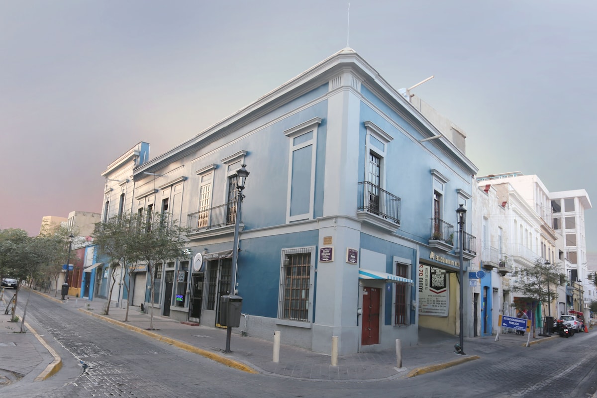 Élvezd a speciálisan tervezett szálláshelyeinket, hogy a lehető legjobban érezd magad Guadalajarában tett látogatásod során. Ez egy újonnan felújított ingatlan, 8 stúdióval és kellemes terasszal rendelkezik. Az 5-ös stúdiónk tágas, teljes fürdőszobával, kényelmes franciaággyal, okostévével és felszerelt, luxuskivitelű teakonyhával rendelkezik. Tiszta helyek és olyan dizájn, amely lehetővé teszi, hogy pihenj és lazíts, valamint élvezd a város egyik legjobb területét.