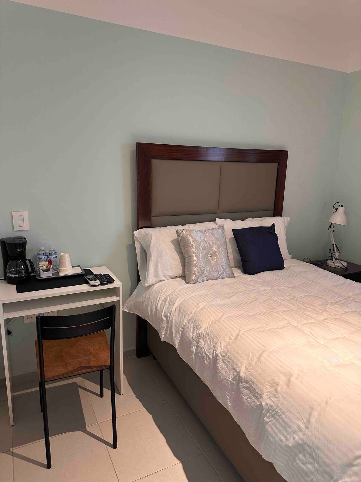Our suite features expansive spaces designed to meet your needs, from a cozy living room to an indulgent bedroom to a luxurious bathroom. The suite has air conditioning, television in the living room and in the bedroom, within our facilities you can enjoy the gym, heated pool, and also feel safe leaving your car in our parking lot