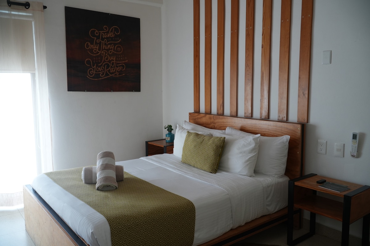 Kényelmes és jó helyen lévő hely, ideális azok számára, akiknek pihenniük kell egy napos tevékenység, találkozó vagy munka után a városban. Könnyedén elérheted a népszerű üzleteket és éttermeket erről a gyönyörű szálláshelyről. Az ADO buszpályaudvar közelében található. Fedezd fel a Riviera Mayát gondtalanul. Playa del Carmen, Tulum és más úti célok is elérhető közelségben vannak.