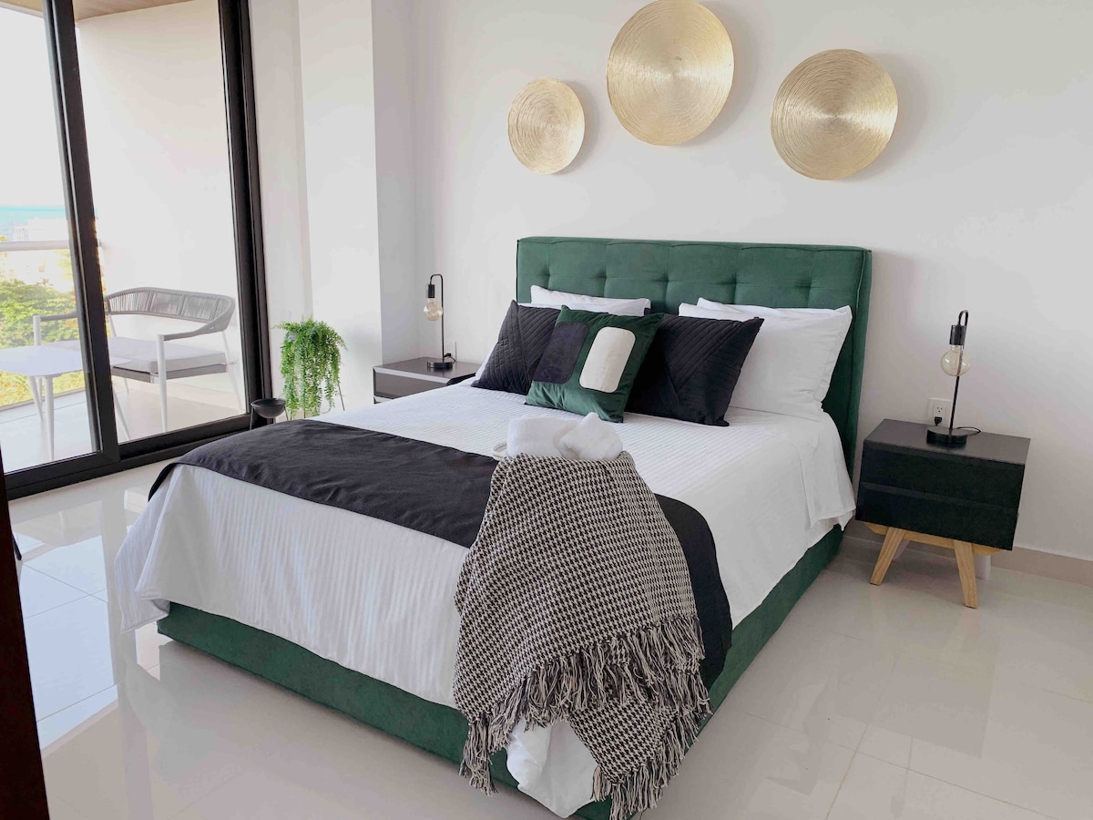 Este lugar único tiene su propio estilo. Elegante , nuevo y con la mejor vista al mar del caribe . Nuestro departamento cuenta con una recámara matrimonial súper elegante , televisión , closet y baño completo . Sala de televisión con sillón sofá cama , televisión , baño completo . Cocina equipada totalmente nueva , todo es eléctrico, centro de lavado. Terraza completa con camastro y muebles para que disfrutes tus vacaciones en familia con la mejor vista al mar.