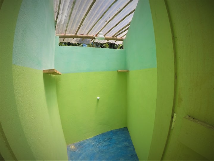 Csendes elhelyezkedés, 3500 m2-es, megőrzött trópusi erdővel, közös konyhával, függőágyas erkéllyel és Wi-Fi-vel.
