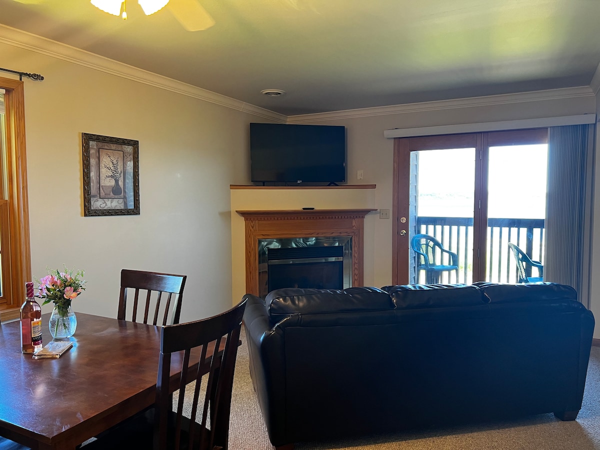 Szép, tiszta lakás mindössze 5 percre a Michigan Tech-től és kilátás a Portage-tóra (a tóhoz is!). Egy parkolóhely áll rendelkezésre a garázsban, így autóval egyenesen a lakásba mehetsz anélkül, hogy foglalkoznod kellene a hóval. A felhajtó le van szántva. Wifi, fűtés, keurig kávékínálat az árban. A mosógép és a szárítógép a tágas, zuhanyzós fürdőszobában található. Teljes konyha és elektromos kandalló. Lépcsőlift a garázsból. Queen méretű ágy, további kihúzható kanapé (teljes méretű) és kisgyermekágy.