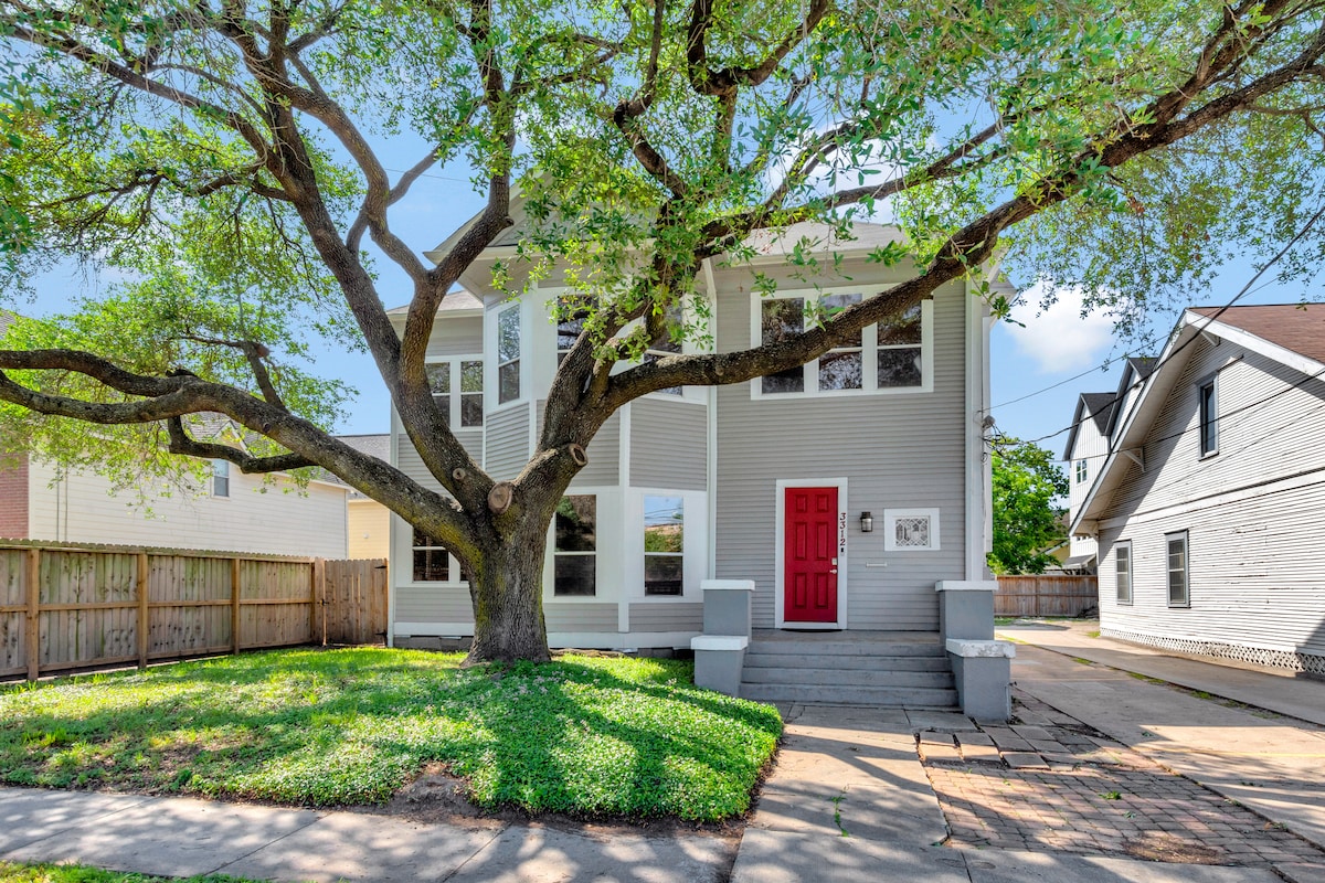 Charming first half 20th century duplex located in Houston Museum District, 1 mile away from Texas Medical Center. Walking distance (10 min) from Children Museum, MFA/HMNS and Hermann Park. Around the corner from Turkey Leg Hut. Centrally locatd to reach NRG/Minute Maid Stadium /Toyota Center. Just renovated 1st floor apartment with 2 bedrooms (2 King Bed). 2 Bathrooms. In unit washer and dryer, back patio, FREE gated parking. Driveway in need of a renovation, waiting for COH permit.