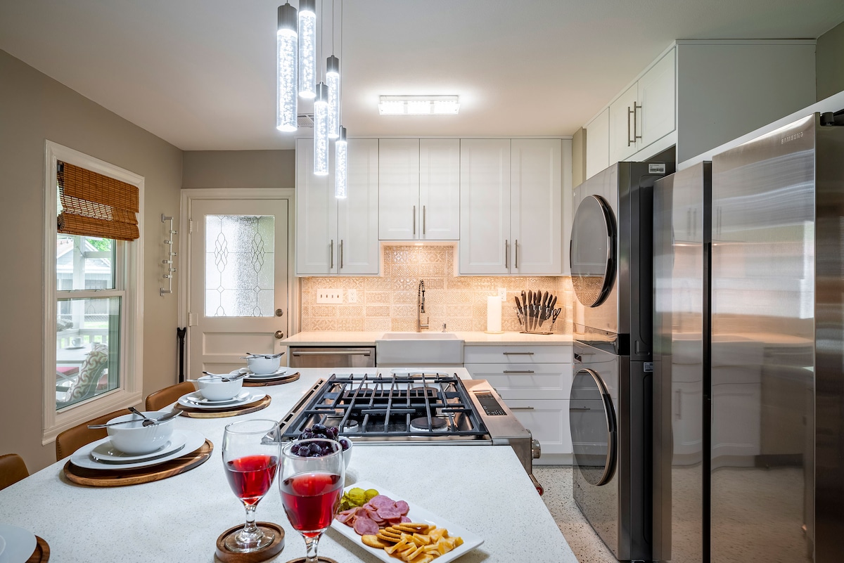 Nem fogod elfelejteni, hogy ebben a modern otthonban szálltál meg, amely ínyenc konyhával, saját fürdőszobával és rengeteg természetes fénnyel rendelkezik. Sétálj be a privát hátsó udvarba a hálószobából vagy a konyhából, és egyél valamit a szabadtéri étkezőben, vagy igyál egyet a tűzrakóhely körül. Utána menj be a tágas, szállodai társalgóba - mint a nagyszerű szobába, ahol a 75hüvelykes tévében nézheted a Netflixet. A mosókonyha új, nagy kapacitású mosógéppel, szárítógéppel és mosogatóval rendelkezik. Könnyen megközelíthető fedett parkolás.