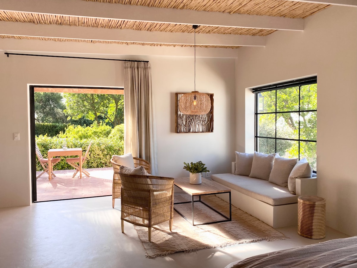 Stúdió apartmanunk egy 40 négyzetméteres erkélyre nyílik, ahonnan panorámakilátás nyílik a Hout Bay Valley-re és a Helderberg hegyekre. A nagy tolóajtók eltűnnek a falakban, akadálytalan beltéri/kültéri áramlást biztosítva, miközben a megemelt pozíció védi a magánéletet. A nyitott alaprajzú fürdőszoba egy zárt, titkos kertre néz, amely keret nélküli üvegzuhanyt is tartalmaz. Az egység teljesen felszerelt teakonyhával rendelkezik, és minden nap kiszolgálják, kivéve a hétvégéket és a munkaszüneti napokat.