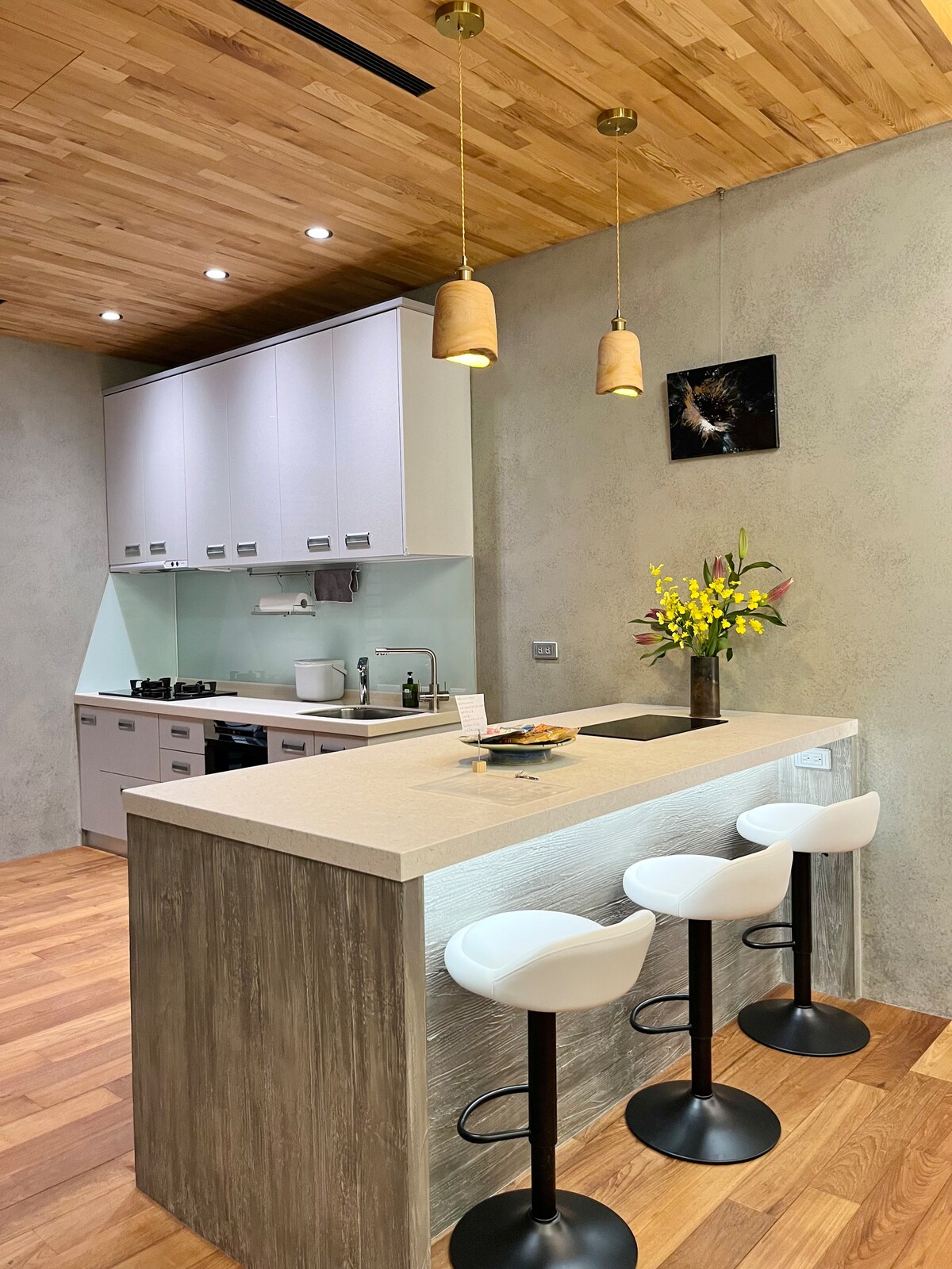 (房子座落於安靜的透天社區,訂房需要配合夜間音量管制) 光雨好宅是一個由新銳設計夫妻花半年時光親手打造的翻新透天,用十年累積的美學素養和生活品味去打造一個精緻又溫暖且具有顏值的家。我們樂於分享這樣的美感經驗,所以非常歡迎大家來到光雨好宅體驗生活。 我們的設計意念,是希望能夠讓空間裡的人,願意暫時當個宅男宅女,宅在裡面一整天,抽離現實,忘記生活裡的紛擾與煩惱。 光雨好宅的一樓主要是玄關與落塵區,請拖鞋後沿著溫潤的原木樓梯,往上的二樓與三樓,是您們入住光雨好宅後的主要活動空間。房子獨立使用,不會有任何陌生人打擾。 二樓有兩個房間,兩個衛浴,一個廚房,一個吧台 三樓有一個房間,一個衛浴,一個客廳,一個陽台 三個房間有各自不同的設計法想與風格,有手工編織與原木熱帶氣息的北歐感,又或是古典藝術透過現代美學轉換詮釋的風格,以及對於詫寂的化繁為簡的演繹,我們都做了精心的打磨與堆砌。 每個房間的床組,都兼顧支撐性與舒適度,適合深度睡眠,全新的變頻空調,舒適且具有設計感的各式沙發單椅,手工編織的吊椅,多層次的空間照明,都希望美感在房子裡俯拾皆是。