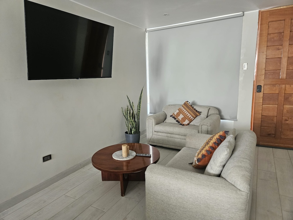 Gyönyörű és modern belső lakás (első szint 110 m2), teljesen felszerelt, ideális a pihenéshez a partnereddel, és a világból való elszakadáshoz. 4 perc a Huancayo Terrestre termináltól, 4 perc az Universidad Nacional del Centro del Perú-tól, 5 perc az EsSalud - National Hospital Ramiro Prialé Prialé-tól, 15 perc a városközponttól. Csendes, privát és biztonságos területen található, kiterjedt zöld területek, parkok, gyógyszertárak, kisboltok, éttermek közelében