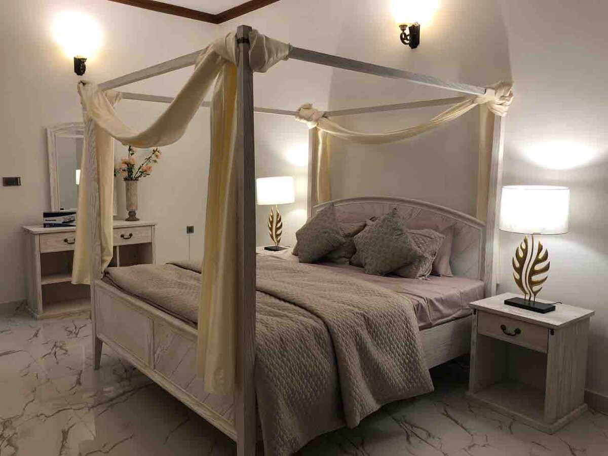 Feel free to book or message me first. Happy to answer any specific questions in advance at +1 737-999-2 five zero one. Included in Your Stay: ⚡ Silent backup generator ❄️ 5 powerful AC units 🌐 Strong internet connection 🔥 24/7 Hot water and gas ✨ Washer & Dryer 🧹 Daily complimentary housekeeping 🛡️ 24/7 security with four guards (2 on day shift, 2 on night shift) 🛏️ Two complimentary floor mattresses Extended Services: 🚗 Car rental 🚐 Airport pick-up/drop-off van service