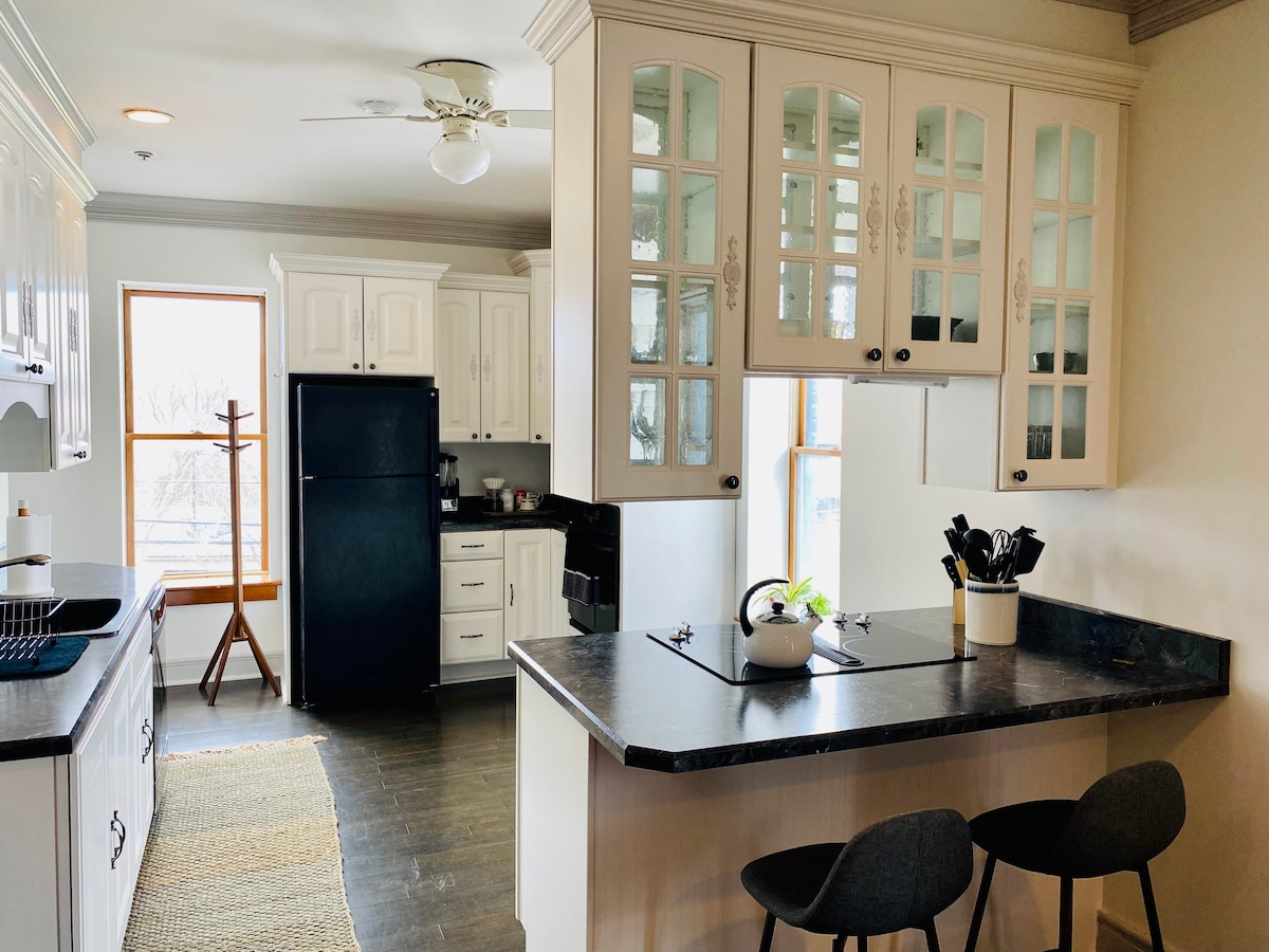 Üdvözlünk hívogató és világos, 2 hálószobás lakásunkban Kingston belvárosában. A hely egy sétálóparadicsom, amely a történelmi Stockade negyed legjobbjai közé tartozik, és jól el van helyezve a Hudson-völgy és a Catskill-hegység felfedezéséhez. A kényelmi szolgáltatások közé tartozik a bőrből készült szekcionált kanapé, a Roku SmartTV, a HD projektor, a mosogatógép, a deluxe ágynemű az álomszerű éjszakai alváshoz, a sötétítőfüggönyök, egy hangszóró és két karosszék a verandán.