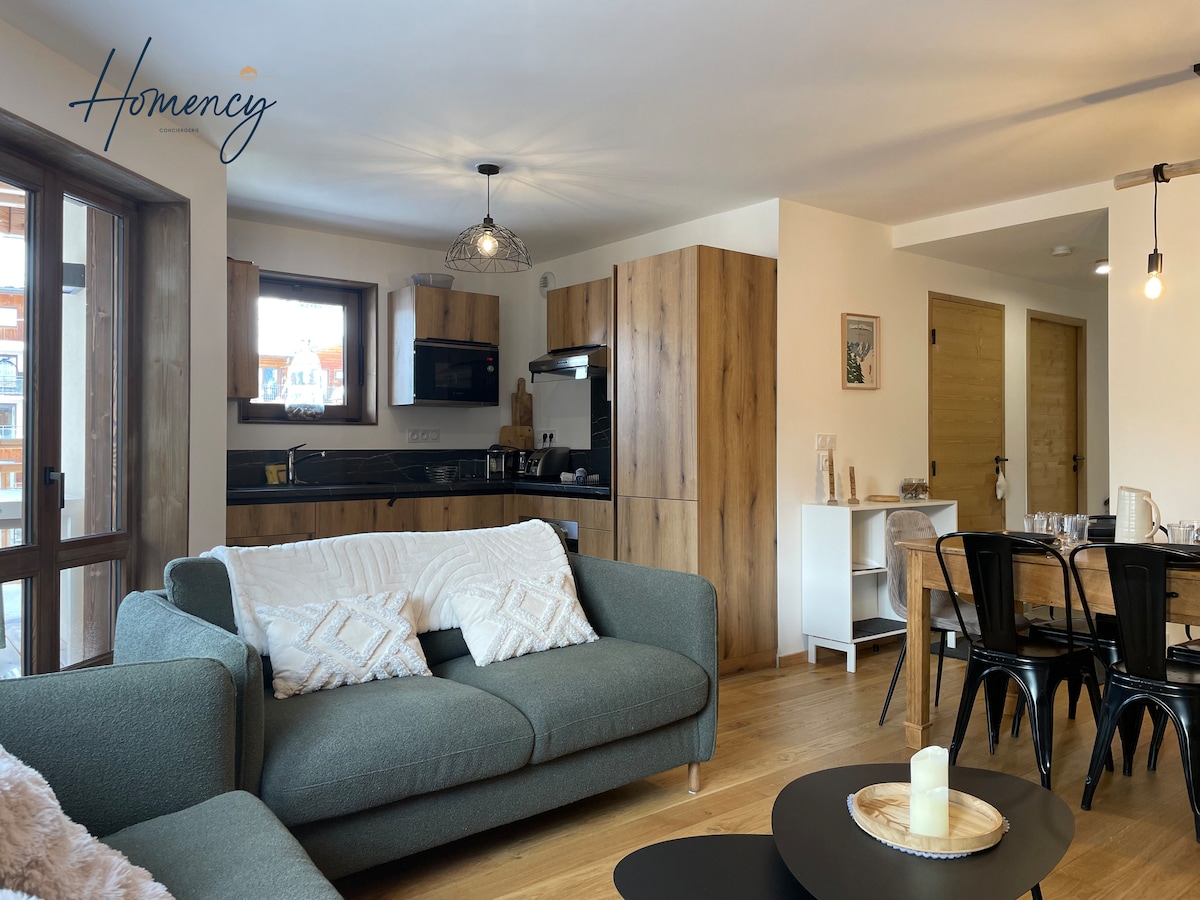 Szép lakás, nagyon otthonos és felújított, résidence du Val d 'Ys in Cognet, ski start at 100m, central. Nagyon jól felszerelt, gyors wifivel és csúcsminőségű készülékekkel / ágyneművel / bútorokkal. Nagy, nagyon világos nappali délre néző erkéllyel és gyönyörű kilátással a hegyekre, felszerelt konyha, 2 hálószoba tárolóval, modern fürdőszoba, külön WC, nagyon funkcionális előszoba. Síszoba és fenntartott parkolóhelyek a lakóhely számára