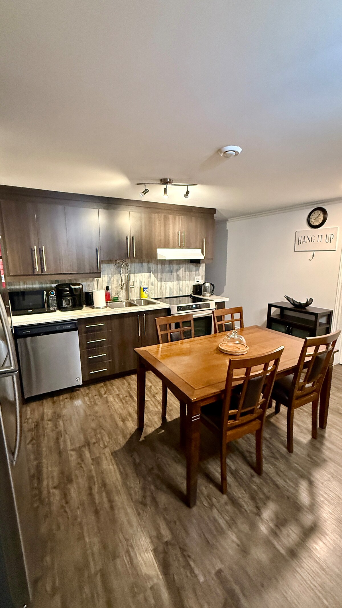 NON FUMEUR Recharge auto NIVEAU 2 ($ à discuter). Appartement privé et entrée privée. Parking sur place. Cuisine complète, salle de bain douche. Lit queen avec couette-plume de qualité. Lit avec housse anti-acariens. Buanderie dans le logement Animaux permis (avec approbation). Netflix, Disney et Prime inclus. Internet haute vitesse. Caméras extérieures, détecteur de fumée et de monoxide de carbone, extincteur, serrure à code unique, diverses issues de secours, éclairage extérieur, etc.