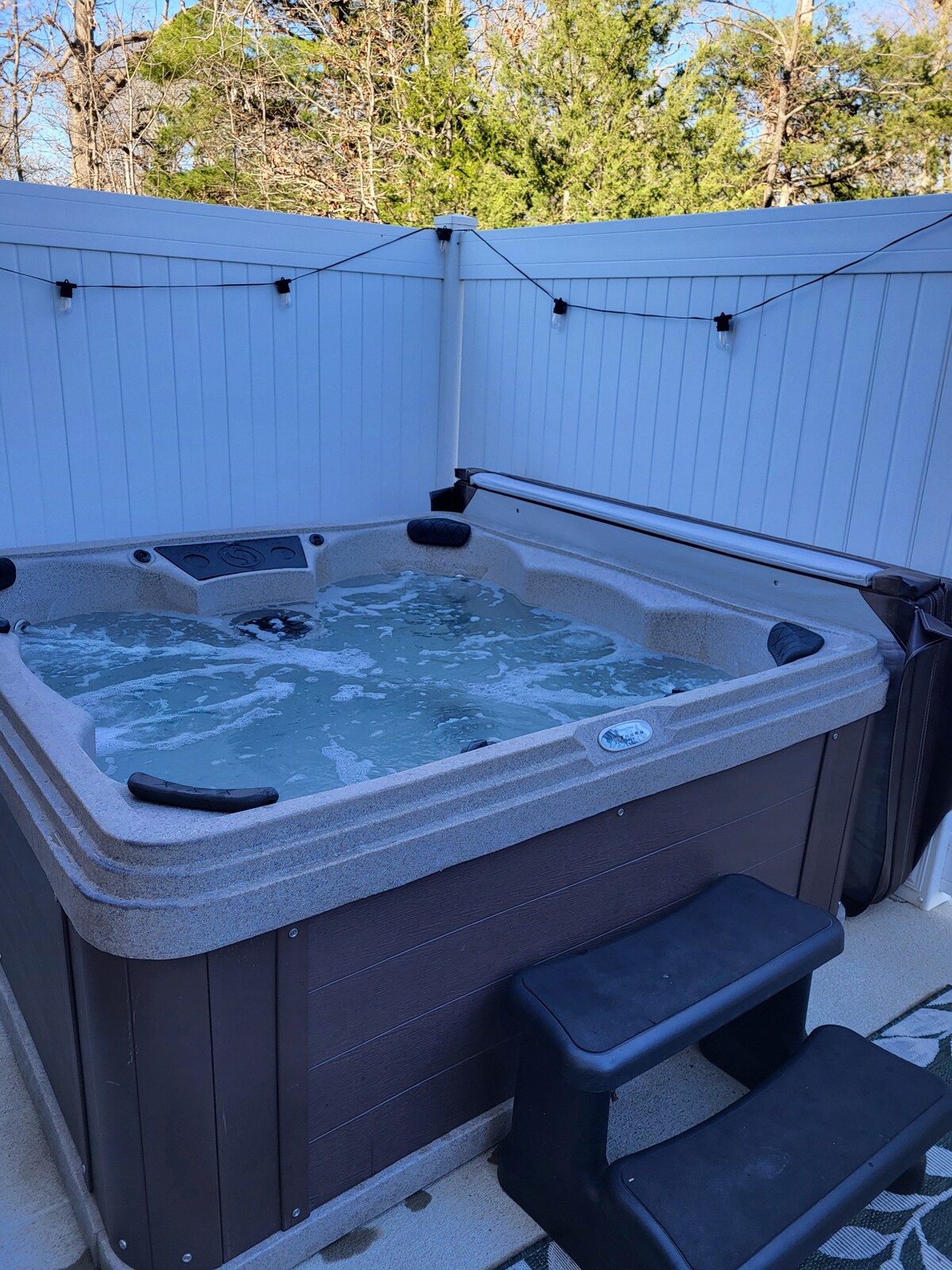 Private Retreat! Relax in your own quiet courtyard with waterfall, hot tub, outdoor dining, and grilling entertainment space! The house is cozy, luxurious, and modern. Perfect for a refreshing getaway relaxing under the stars in the hot tub. Minutes from boating, sailing, and fishing on the beautiful Stockton Lake. Close proximity to the lake, swimming areas, boat rentals, fun!