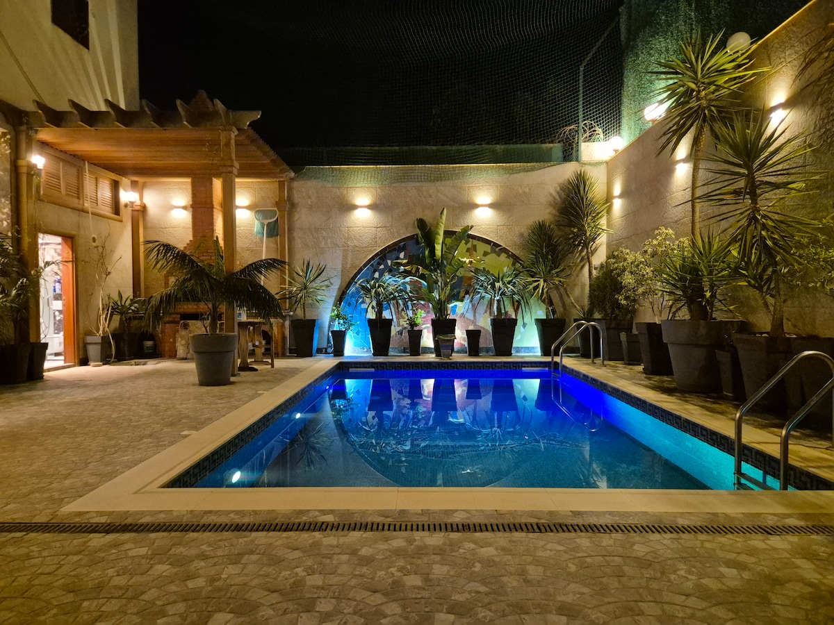 Üdvözlünk bájos házunkban, amely Algír magaslatain, a tekintélyes Val d 'Hydra negyedben található! Kényeztesd magad ezzel a nagy, csendes, 1000 m2-es otthonnal, ahol szabadtéri helyiségek is a rendelkezésedre állnak, beleértve egy privát medencét, ahol nincsenek szomszédok, és amely ideális családoknak, baráti társaságoknak vagy olyan utazóknak, akik kényelmet és kikapcsolódást keresnek a kíváncsi tekintetek elől. Üzletek és éttermek közelében. Privát parkoló, játszótér, szabadtéri konyhák, grill...