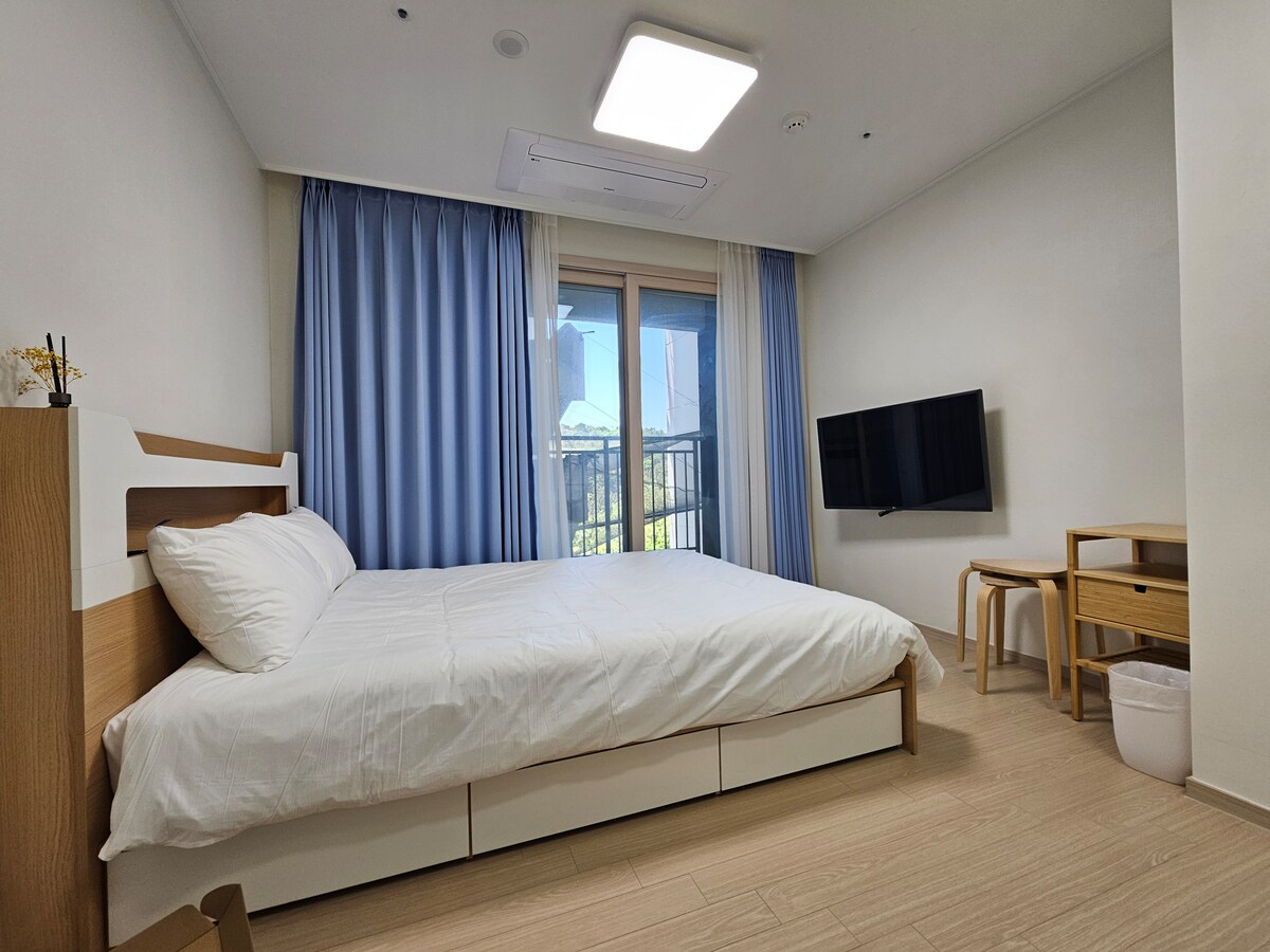 Ez a legközelebbi szálláshely, ahonnan a legközelebbi kilátás nyílik az óceánra. ♥ Figyeld a hullámokat, miközben a tengert és a napfelkeltét nézed az ágyból a királyi emeleten:) Rengeteg queen méretű ágy, fehér szállodai ágynemű, szép fények és keretek, valamint virágok, így készíthetsz Instagram érzelmi fényképeket, és fényképeket készíthetsz a Google Chromecast 4-ről, így használhatod a saját fiókodat, például a Netflixet, a Disney + -t és a TV-t. A lakossági strand (Main Surf Street) 15 perces sétával elérhető, csendes és tiszta, mivel egy kicsit messze van. Közvetlenül a szálláshely mellett található egy kisbolt, valamint a közeli Nonghyup Hanaro Mart, kocsmák stb. Javasoljuk, hogy a szálláshelytől autóval 15 perc (13 km) sashimit vásárolj, és a Jumunjin Seafood Market szálláshelyén edd meg, amely friss és olcsó:) A Garden/Jukdo/Population Beach és a Nam-ae 3ri Beach össze van kötve, így más hangulattal érezheted a tengert, miközben a fehér homokos part mentén sétálsz. Remélem, boldog emlékeket szerzel az 1203-as szobában, amely ●a legjobb helyen található.●