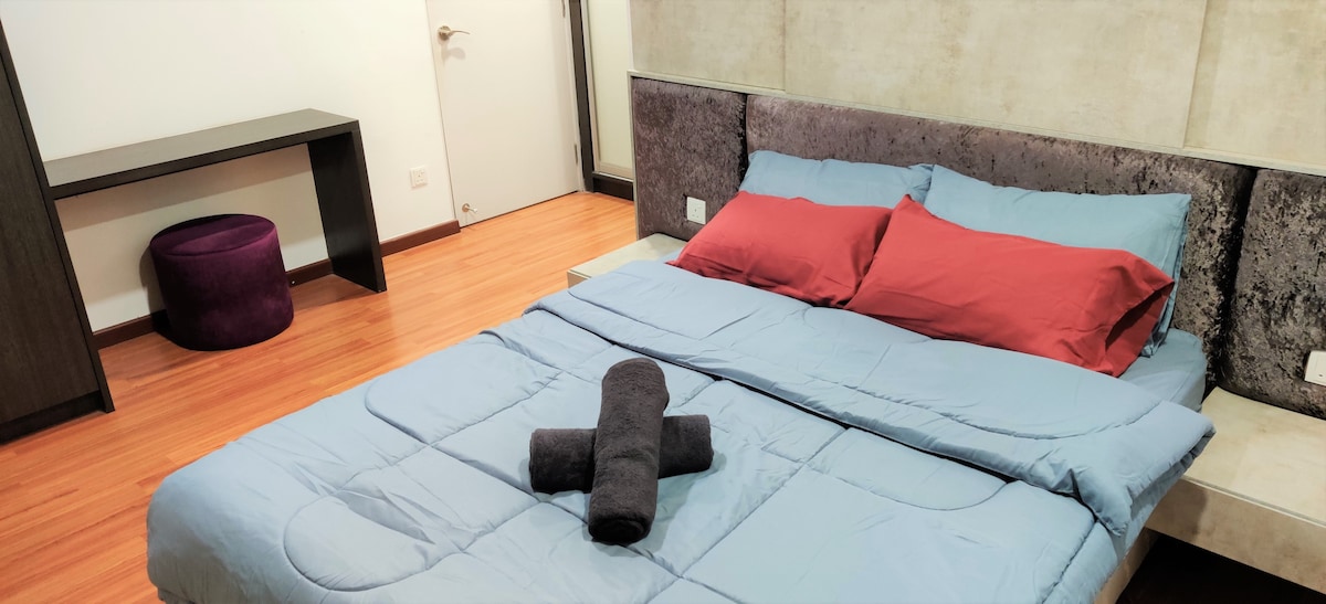 Pihenj és lazíts egy hangulatos, világos, tágas queen méretű hálószobában, fésülködőasztali tükörrel és szállodai minőségű ágyneművel, matraccal, párnával és törölközővel. Netflix HD Family és Youtube vendégfiókkal és stabil 500 Mbps sebességű üvegszálas Wi-Fi-vel. Alkalmas otthoni vakációra, ballagásra, családi időtöltésre és üzleti utakhoz. A vendégek hozzáférhetnek a medencéhez, a játszótérhez, az edzőteremhez, a kisboltokhoz és az i-City Mall bevásárlóközpontba vezető hídhoz is. Autópálya, Seksyen 14, Klang, UiTM és Stadium Shah Alam közelében. Örömmel segítek, hogy a szálláshelyen való tartózkodásod zökkenőmentes legyen~