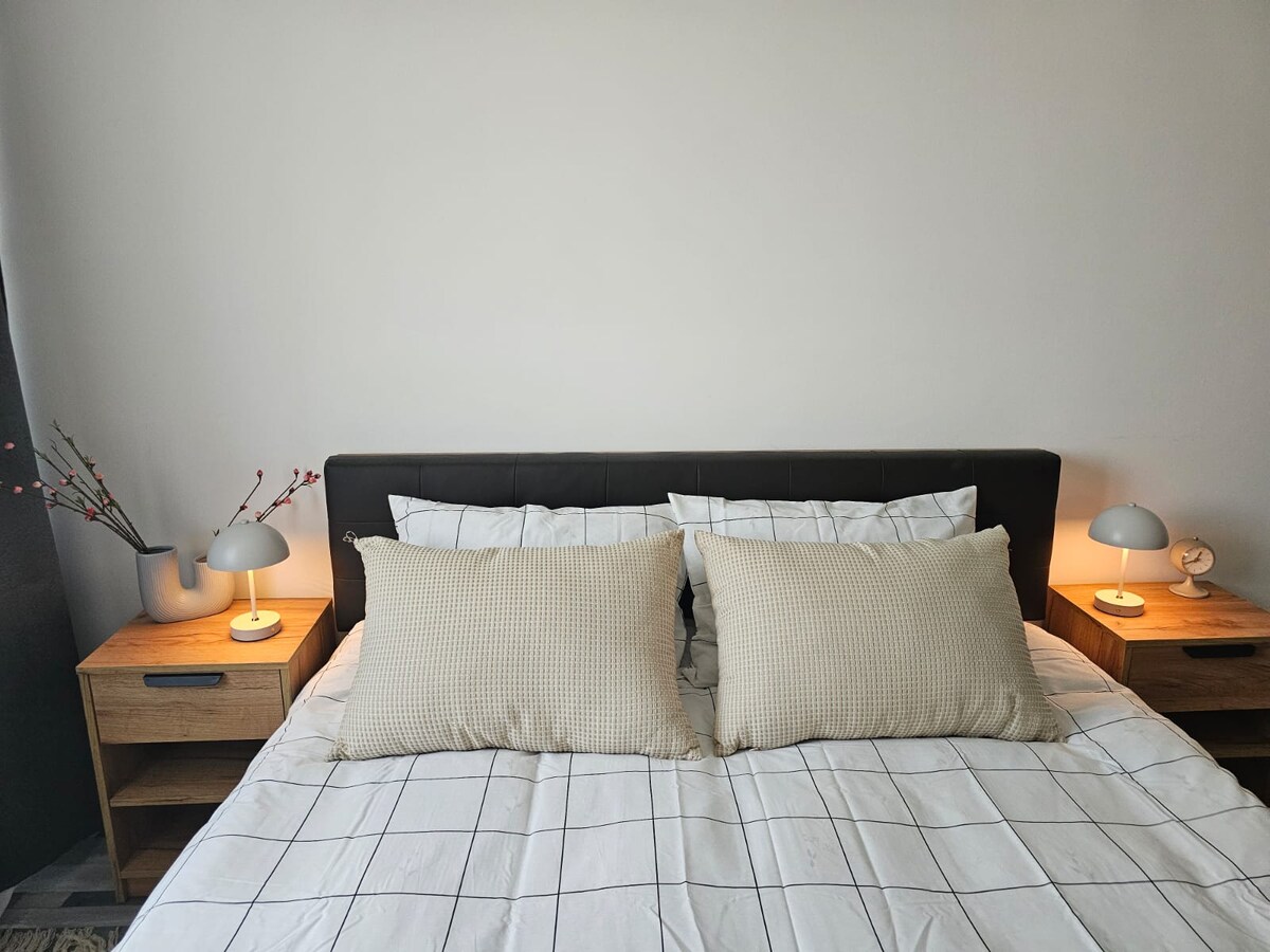 Üdvözlünk gyönyörű és modern lakásunkban, amely a város szívében található! Az apartman tágas és hangulatos hálószobával rendelkezik, amely kényelmes, queen-size méretű ággyal, plüss ágyneművel és rengeteg gardróbbal rendelkezik. A nappali világos és szellős, nagy ablakokkal, amelyek rengeteg természetes fényt engednek be. Tökéletes hely a kikapcsolódásra egy hosszú városnézés vagy munka után, kényelmes kanapéval és síkképernyős TV-vel. Már nagyon várjuk, hogy vendégül láthassunk gyönyörű lakásunkban!