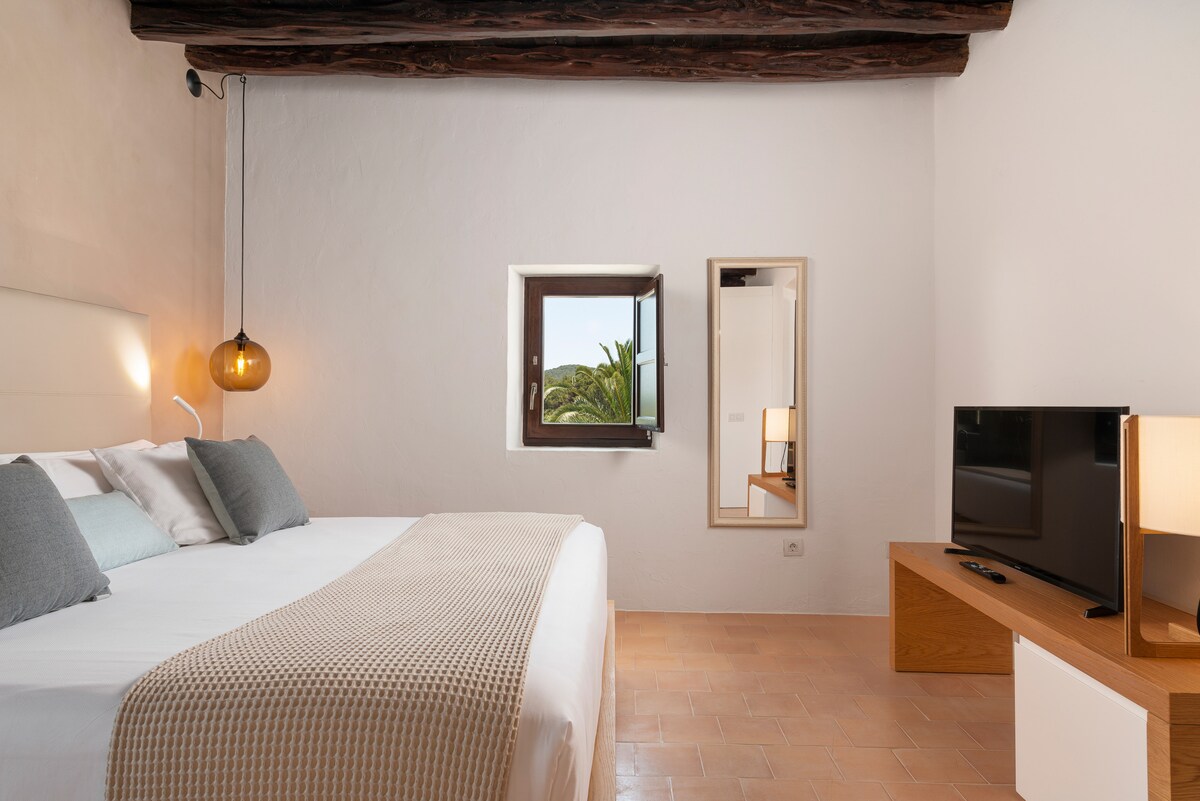 Spacious and stylish! A 27 m² studio designed for those seeking comfort and a modern touch during their Ibiza getaway. ✨ Open-plan living: Perfect for up to 4 guests, offering a bright and airy atmosphere. 💤 Premium sleep: Features a high-quality King Size bed (180x200 cm) or Queen (160x200 cm) and a cozy sofa bed. ☀️ Private Balcony: Enjoy your own outdoor space, perfect for relaxing in the Mediterranean breeze. 🌿 Modern Vibe: The ultimate sanctuary for friends or small families.