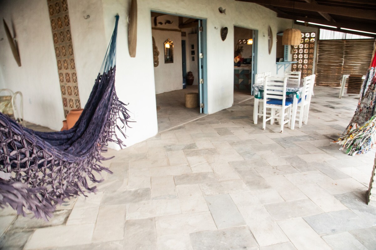Büszkén adjuk ki nyaralónkat Praia de Redondában (Icapui). Közvetlenül a strand felett található, látványos kilátással az óceánra. Csendes hely, amely közvetlen kapcsolatban áll a természettel, ahol pihenhetsz és feltöltheted az akkumulátoraidat. Házunk hatalmas, 530 m² -es kertben fekszik, ahol pálmák, gyümölcsfák és függőágyak várnak rád. Mindössze 10 perc sétára a dombtetőn lévő strandtól. Friss ágyneműt, törölközőket, teljesen felszerelt konyhát és saját parkolóhelyet biztosítunk az autód számára.
