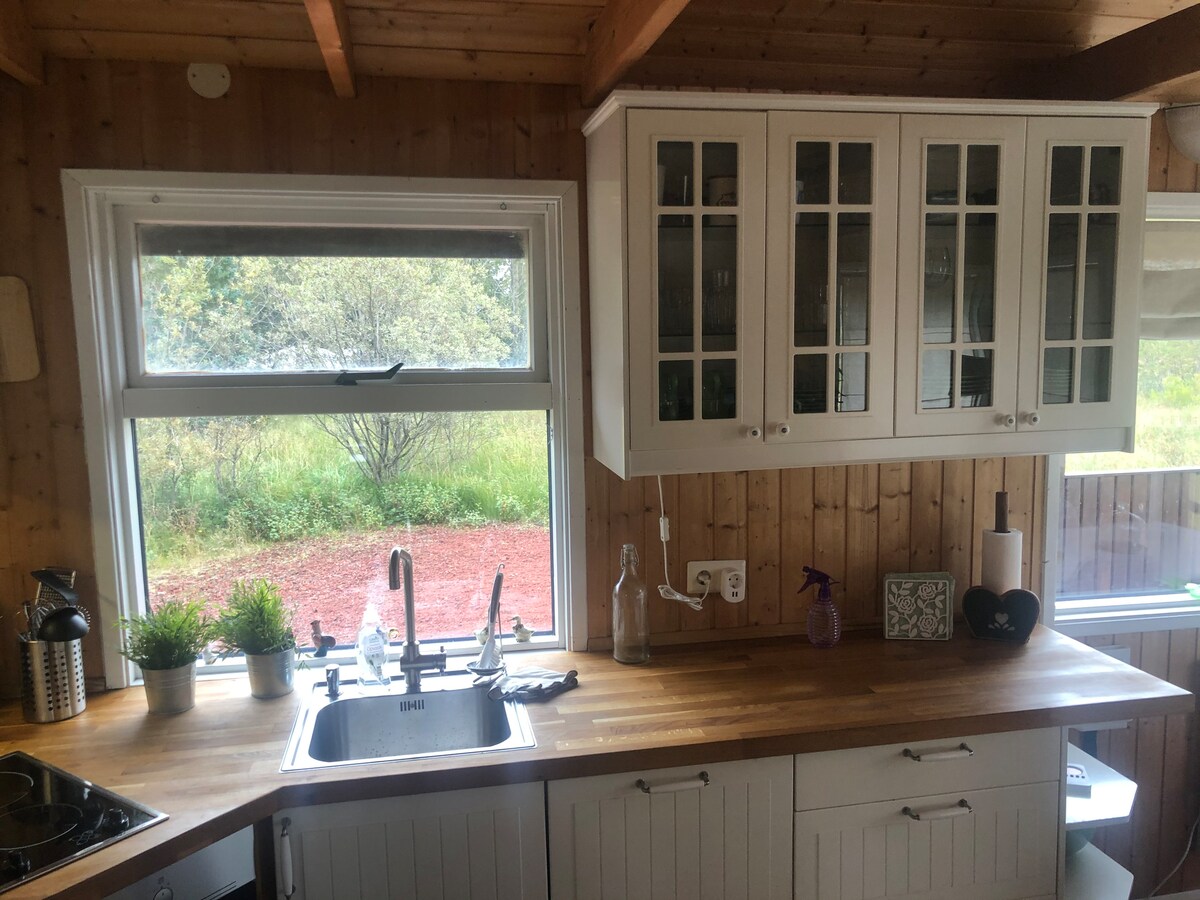 Warm and homy chalet that sits at the end of the big cliff walls of Ásbyrgi National park. Perfect for 2 adults. Big veranda with outside furniture and BBQ. Fantastic view in all directions. Perfect to enjoy the midnight sun and northern lights. Grate for daytrips (Dettifoss 34 km. Whale watching 59 km. Lake Mývatn 76 km. Ásbyrgi 2km. Horse riding, golf a.o.) Great selection of hiking trails. WELCOME !