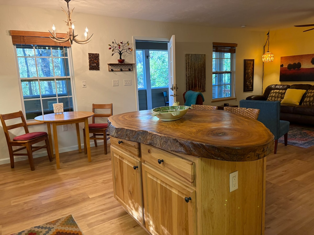 Beautiful serene 2026 remodeled home one mile from Ichetucknee State Park! Also close to Ginnie, Blue, Poe, Royal, and Little River Springs. Step outside with your coffee and enjoy the wooded neighborhood and river views. Large screened porch and well appointed open kitchen perfect for cooking. The house is elevated which creates a separate covered outdoor area with hammocks and a full second bathroom. Perfect cozy space for a couples retreat! Treehouse as an add on for extra guests.