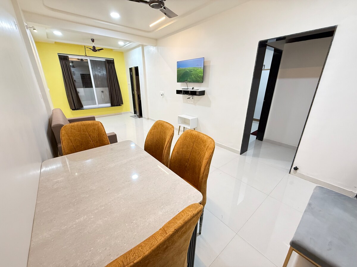 Felejtsd el az aggodalmaidat ebben a tágas és nyugodt térben. Pihenj az egész családdal vagy a barátaiddal ezen a békés szálláshelyen. Ez a 3 BHK Apartment at Dwarka, Nashik, az egyik főutca. A hely fel van szerelve az összes kényelmi konyhával, főzőedényekkel, étkezővel, társalgóval, king-size ággyal, gejzírrel, wifivel, hűtőszekrénnyel, öltözőasztallal, erkéllyel és még sok minden mással. Az ügyfelek nem tudnak bejelentkezni és lefoglalni a lakást 21 óra után előzetes információ nélkül. A LEGJOBB SZÁLLÁSHELY