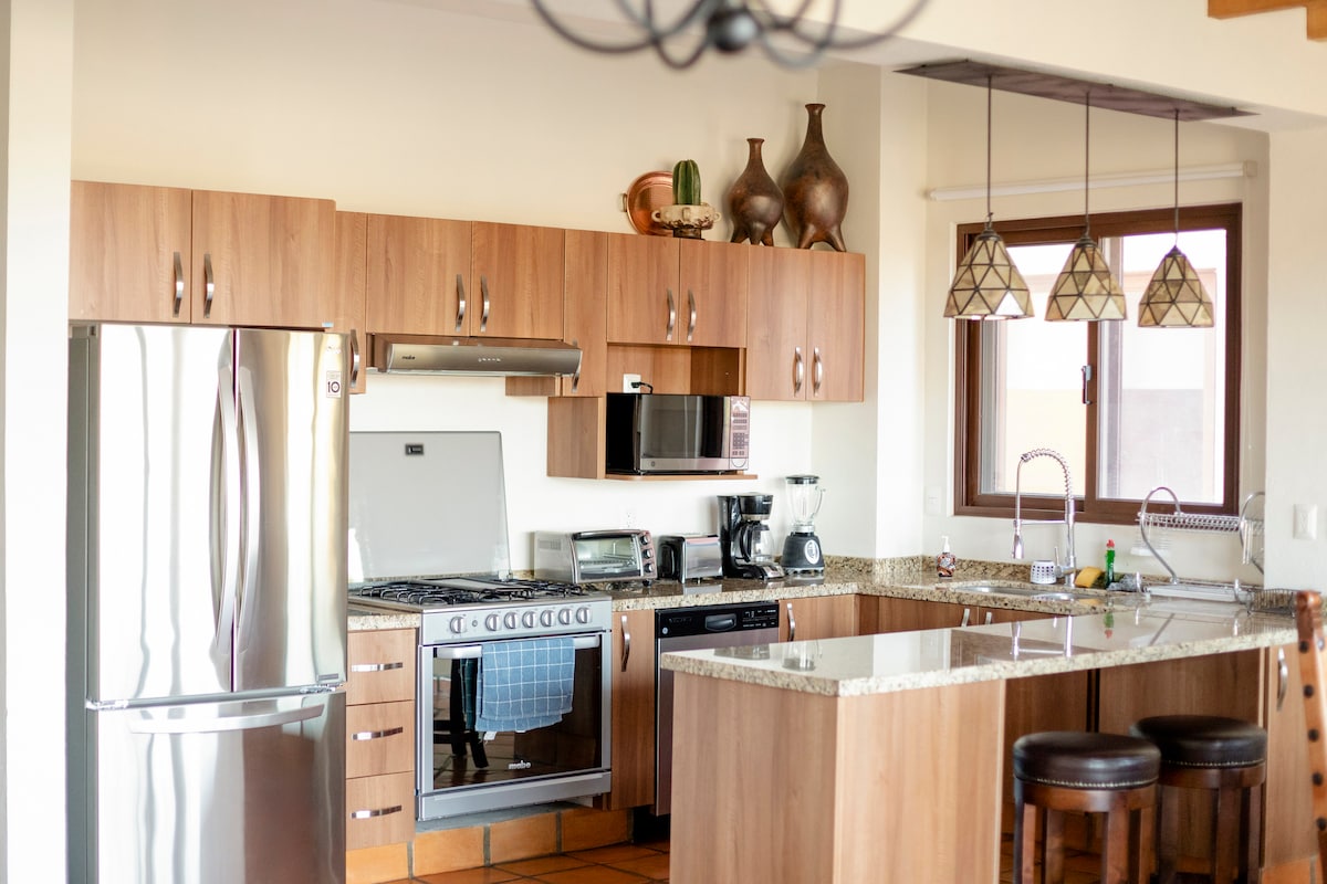 A Casa Milát nemrég újította fel a díjnyertes Solterra+Design+Build csapat. A híres Parrochiától mindössze 3 háztömbnyire található puha, kortárs otthon 3 king-suite hálószobával, egy mesés, nyitott koncepciójú nappalival/étkezővel/konyhával és elegáns felületekkel rendelkezik. Úgy fogod érezni, mintha San Miguel egyik legjobb szállodájában szállnál meg az ár töredékéért. Jellemzői közé tartozik a finom ágynemű, a bolyhos törülközők és a fürdőköpenyek, az aromaterápiás fürdőszobai termékek. 360 fokos kilátást élvezünk a csodálatos tetőtér.