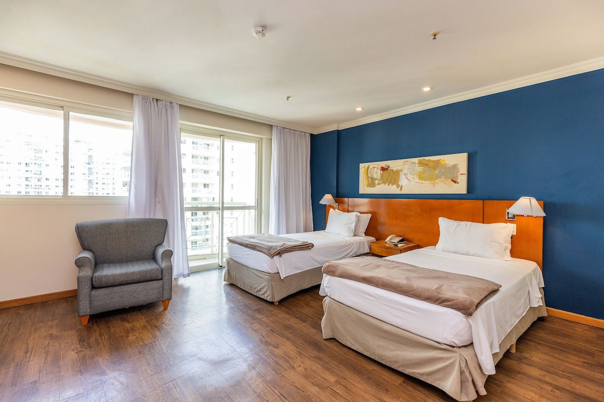 Geniet van een onvergetelijk verblijf aan het strand van Barra da Tijuca, waar luxe en rust samenkomen. Ontspan in het verwarmde zwembad met prachtig zeezicht, in een superluxe 63 m² 1-slaapkamer suite appartement, volledig uitgerust voor jouw comfort. Met dagelijkse schoonmaak, 24u-beveiliging, privéparking, fitness, sauna, jacuzzi en zwembad is dit de ideale plek om te genieten. Reis je met familie of vrienden? Bekijk ook mijn gloednieuwe luxe 2-slaapkamer suite via mijn profiel.