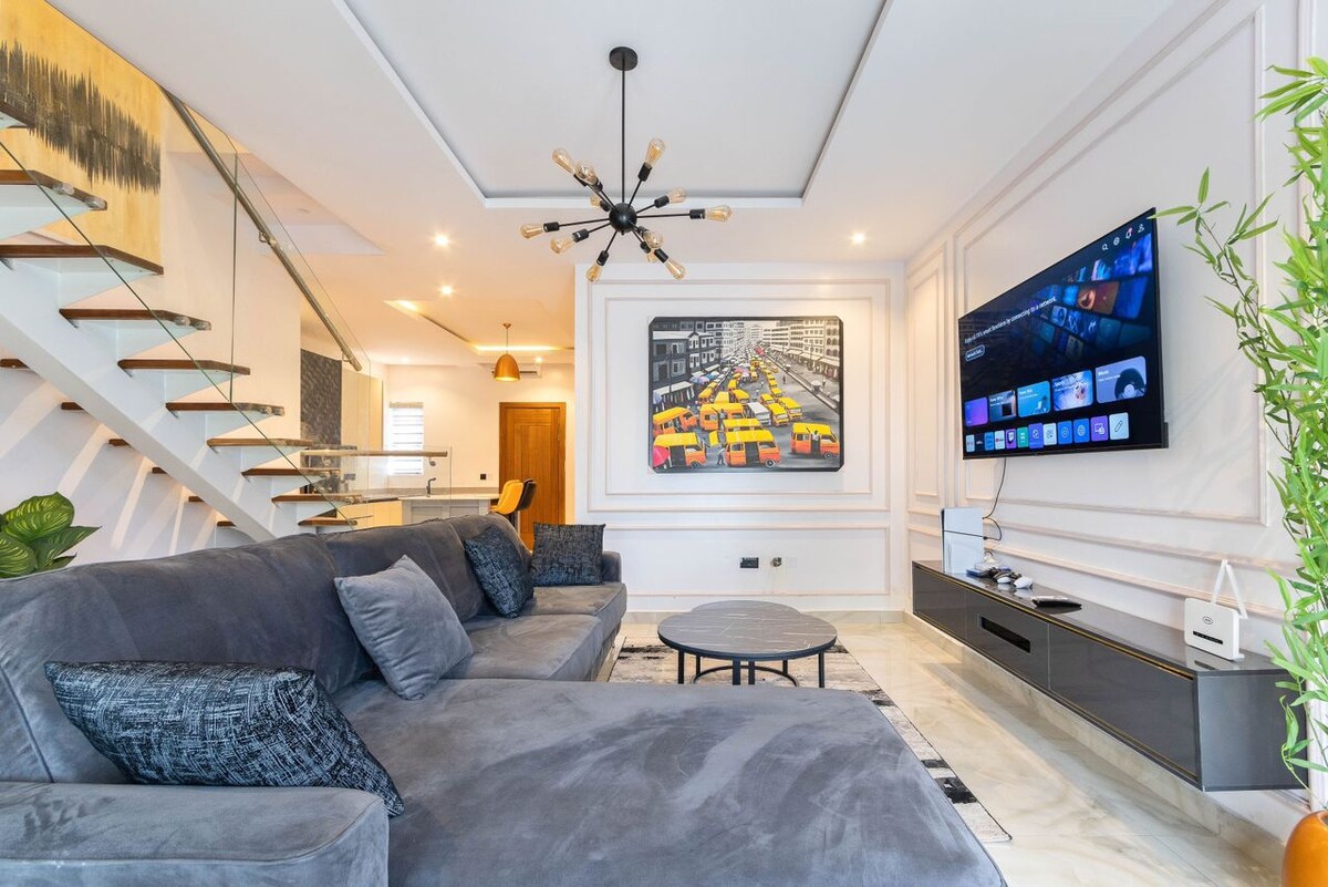 Bájos ipari karakter és prémium otthonos kényelem. Kényelmesen sétálj el az Admiralty Way bevásárló-, étkező- és éjszakai életétől, a Lekki 1. fázisától. Pihenj az úszómedencében, vagy élvezd a filmeket műholdon, Netflixen vagy Amazonon. Szupergyors optikai szálas Wi-Fi. Folyamatos generátoros áramellátás a 24/7 váltóáramos kényelemért. Csendes lakás. Nem alkalmas összejövetelekhez. Szigorúan nemdohányzó. Ne foglald le ezt a lakást, ha a tervezett vendég dohányzik.