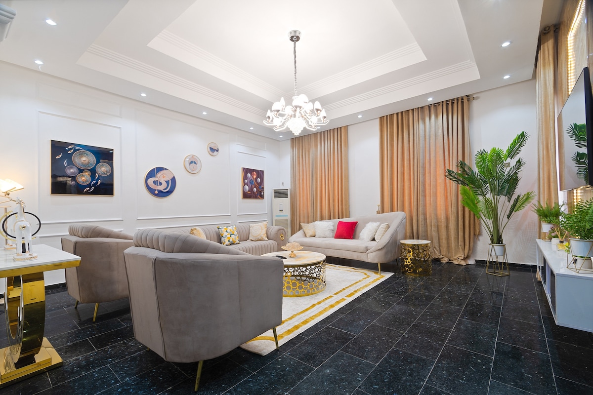 Ennek az egyedi, új luxusháznak saját stílusa van. Lekki szívében található, 5 csillagos kényelmi szolgáltatásokkal. A ház egy éjjel-nappal védett telken található, saját személyes biztonsággal, és a napi takarítási igényeidet kielégítő magánházfelügyelővel. A ház nagyon tágas, és olyan kényelmi szolgáltatásokat kínál, mint az éjjel-nappali villany, úszómedence, légkondicionáló, PS 5, biliárdasztal, asztalitenisz, léghokiasztal, intelligens TV/zár, automata ablakok/kapu, professzionális matracok, DSTV és beépített hangszórók.