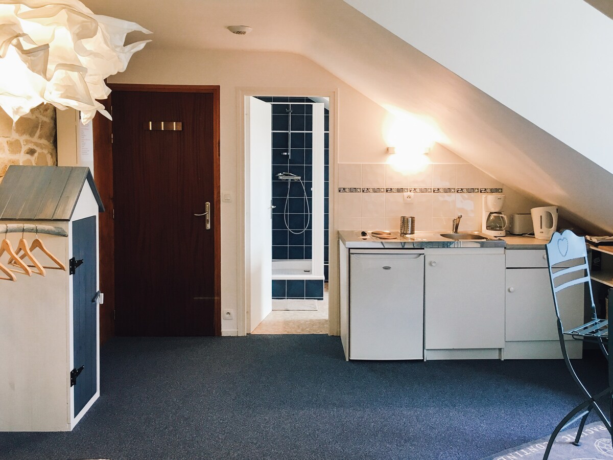 A Morbihan-öböl szívében, az Île-aux-Moine-on található, független stúdió ideális helyen található ahhoz, hogy gyalog vagy biciklivel felfedezhesse az „Öböl gyöngyszemének” minden szépségét. Ideális ahhoz, hogy a lehető legközelebb legyél a természethez, és elszakadj a környezeti stressztől...