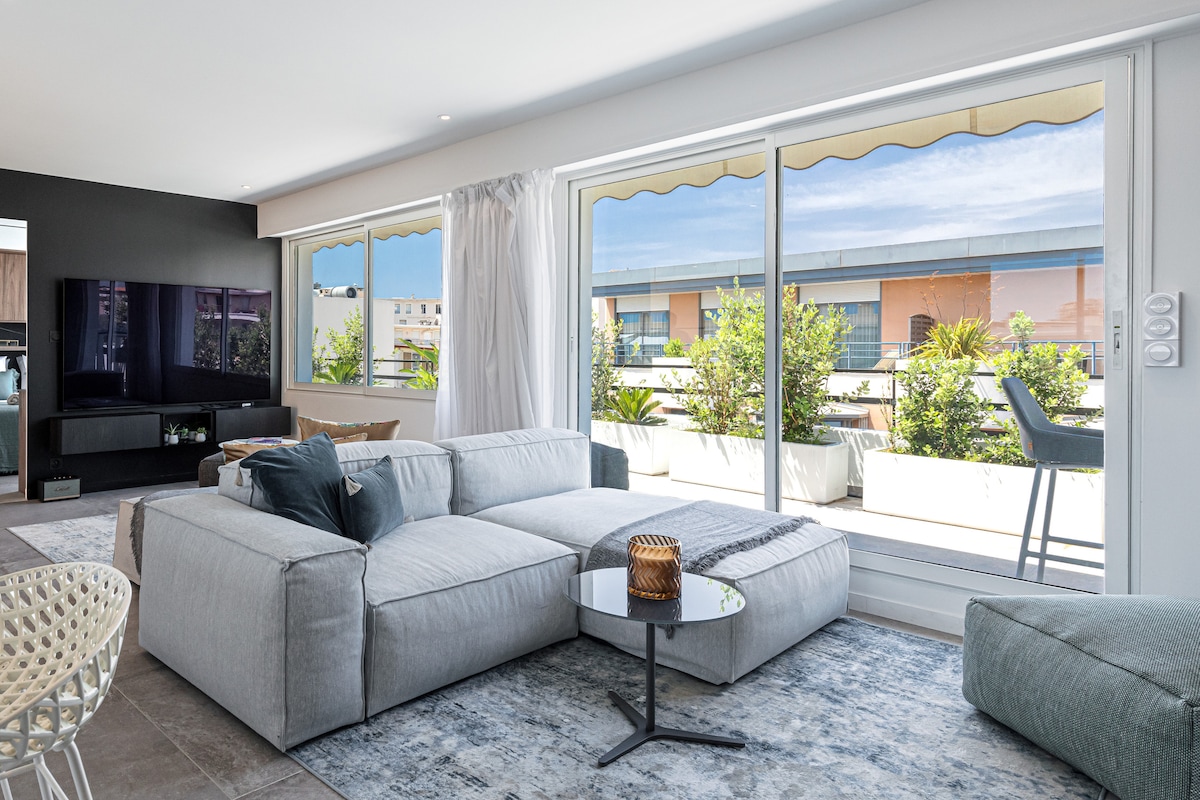 Fedezz fel egy fényben úszó, építész által teljesen újratervezett, békés menedéket. Egy tekintélyes rezidencia legfelső szintjén található ez a kivételes lakás, amely kifinomult dekorációjával és csúcskategóriás kivitelezésével várja vendégeit, és a kényelemre és jóllétre tervezték. Amint megérkezel, elvarázsol a hely eleganciája, a kényelmi szolgáltatások minősége, a két privát terasz nyugalmassága, amelyek pihenésre hívnak az ég és a tenger között.