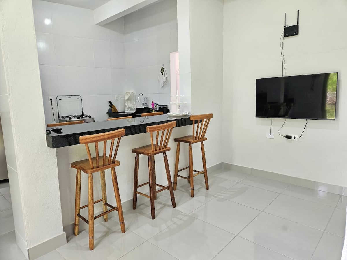 Loft legfeljebb 3 fő részére légkondicionálóval, franciaágy ágyneművel és káddal, saját fürdőszoba, kanapéágy, tűzhellyel felszerelt konyha, hűtőszekrény, valamint erkély. Az apartman csodálatos helyen található, kevesebb mint 100 méterre egy nyugodt tengertől, ahol nincsenek hullámok. Vila Caicás Gamboa do Morro faluban található, csendes és otthonos hely azok számára, akik nyugodt napokat keresnek a családdal vagy a barátokkal. A falu 30 perces sétára található Morro de São Paulótól.